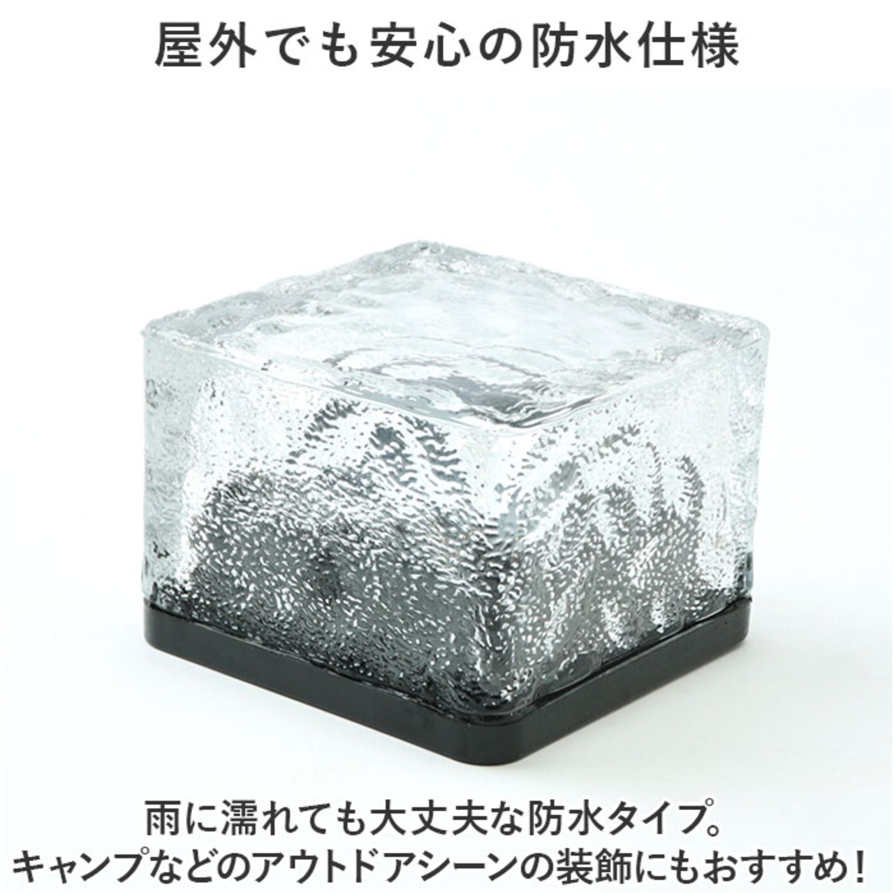・透明感のあるキューブ型ライト。コンパクトなサイズ感ながら、温かみのある光で幻想的な空間を演出。