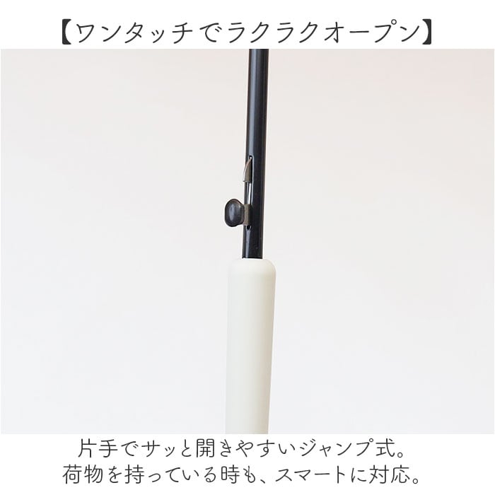 ・片手でサッと開きやすいジャンプ式。荷物を持っている時も、スマートに対応。