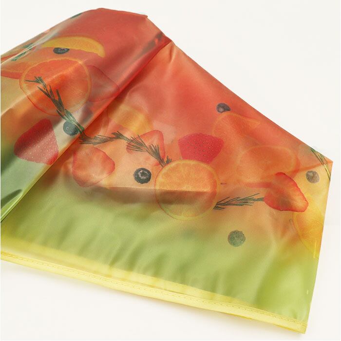 ・目を惹くフルーツ柄に、爽やかなカラーリング。パウダリーマットな質感で年齢問わず愛用♪