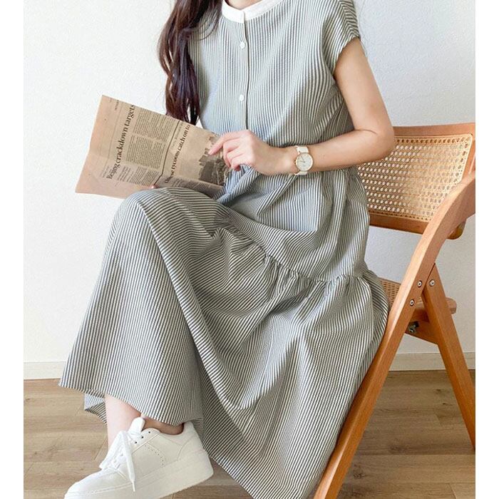 ワンピース レディース シャツワンピース 通販 ワンピ シャツワンピ ロングワンピース ロングワンピ フレアスカート バックリボン リボン 袖なし 袖無し そで無し かわいい 可愛い ロング ロング丈 ゆったり 体型カバー 大人 おしゃれ オシャレ 夏 夏服