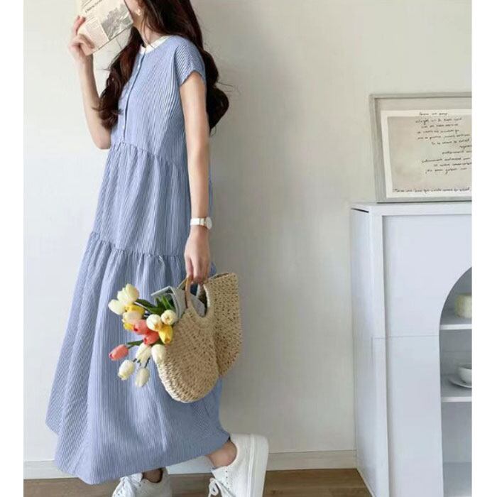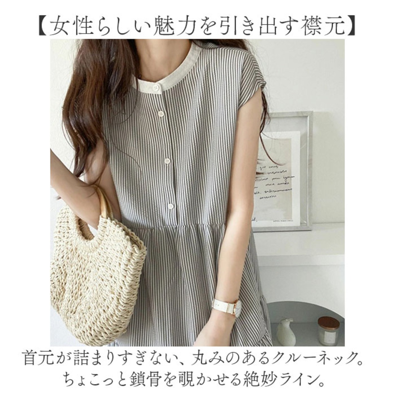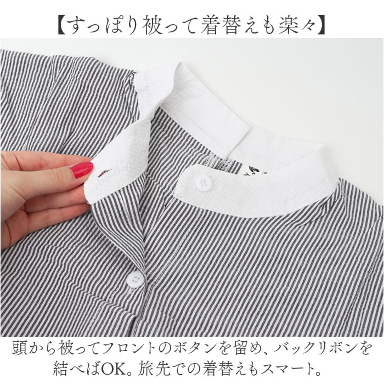 ・頭から被ってフロントのボタンを留め、バックリボンを結べばOK。旅先での着替えもスマート。