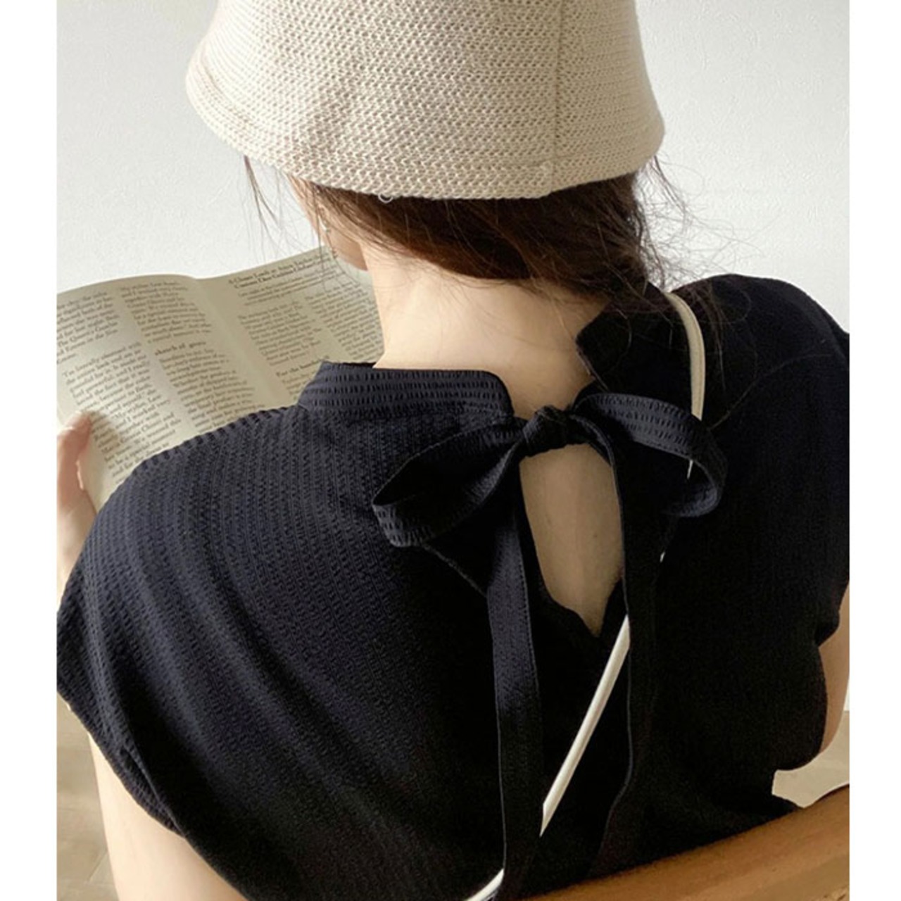 ・バックリボンがアクセント!ナチュラルな雰囲気ながら、上品さもプラスしたデザイン。