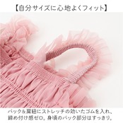 ・腰から広がる、繊細で柔らかなスカート部分。身頃のフロント部分や肩紐もくしゅっと可愛い♪