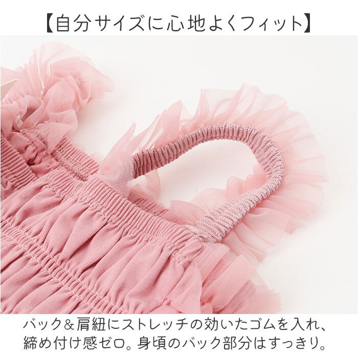 ・バック&肩紐にストレッチの効いたゴムを入れ、締め付け感ゼロ。身頃のバック部分はすっきり。