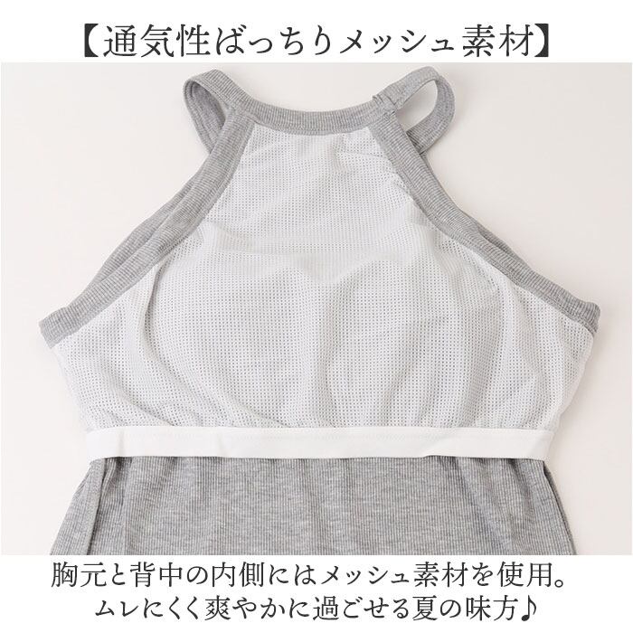・胸元と背中の内側にはメッシュ素材を使用。ムレにくく爽やかに過ごせる夏の味方♪