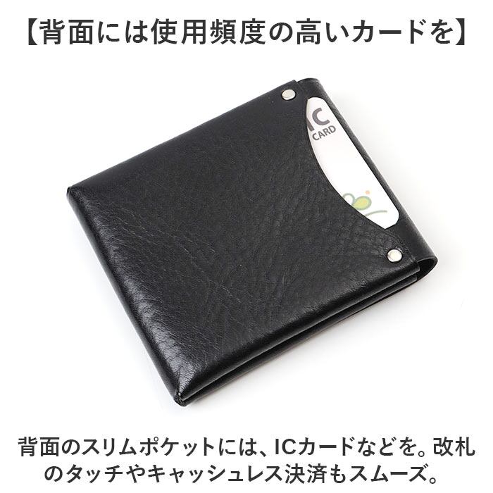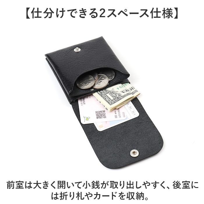 ・前室は大きく開いて小銭が取り出しやすく、後室には折り札やカードを収納。