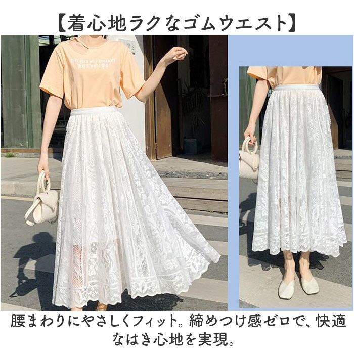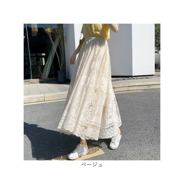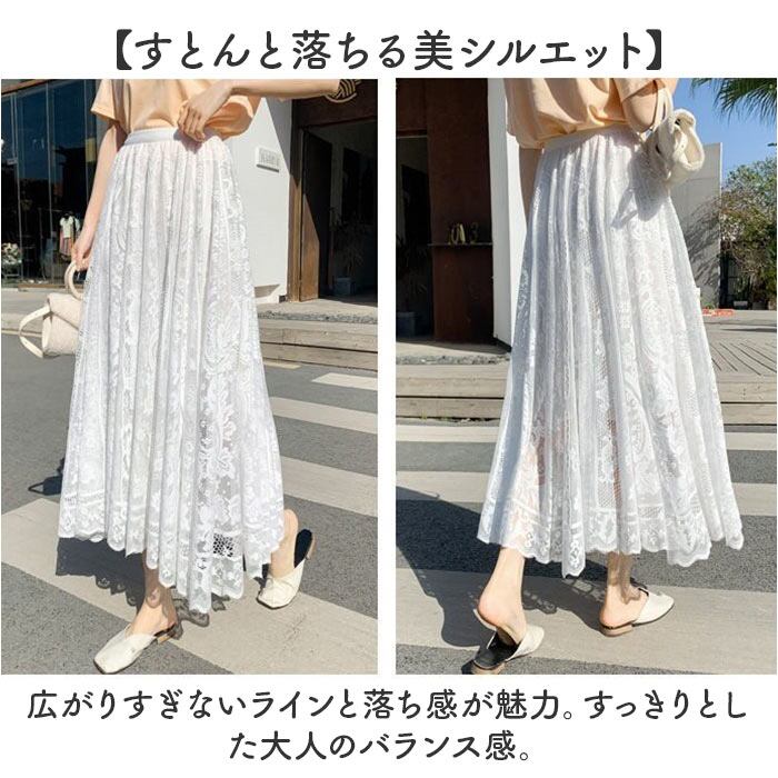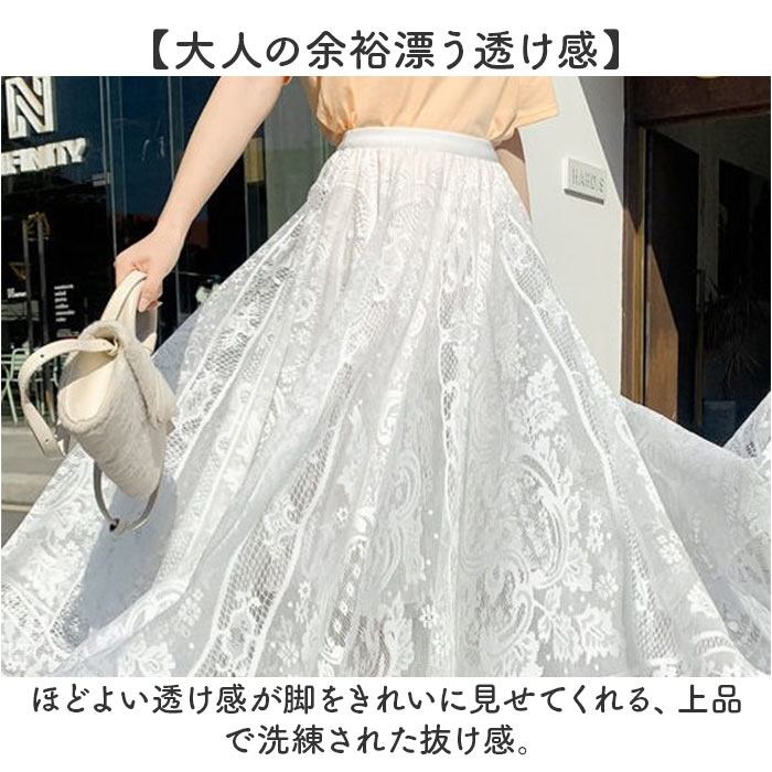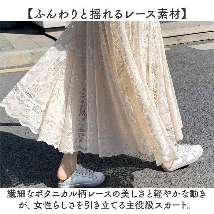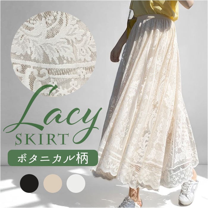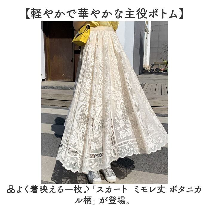 ・繊細なボタニカル柄レースの美しさと軽やかな動きが、女性らしさを引き立てる主役級スカート。