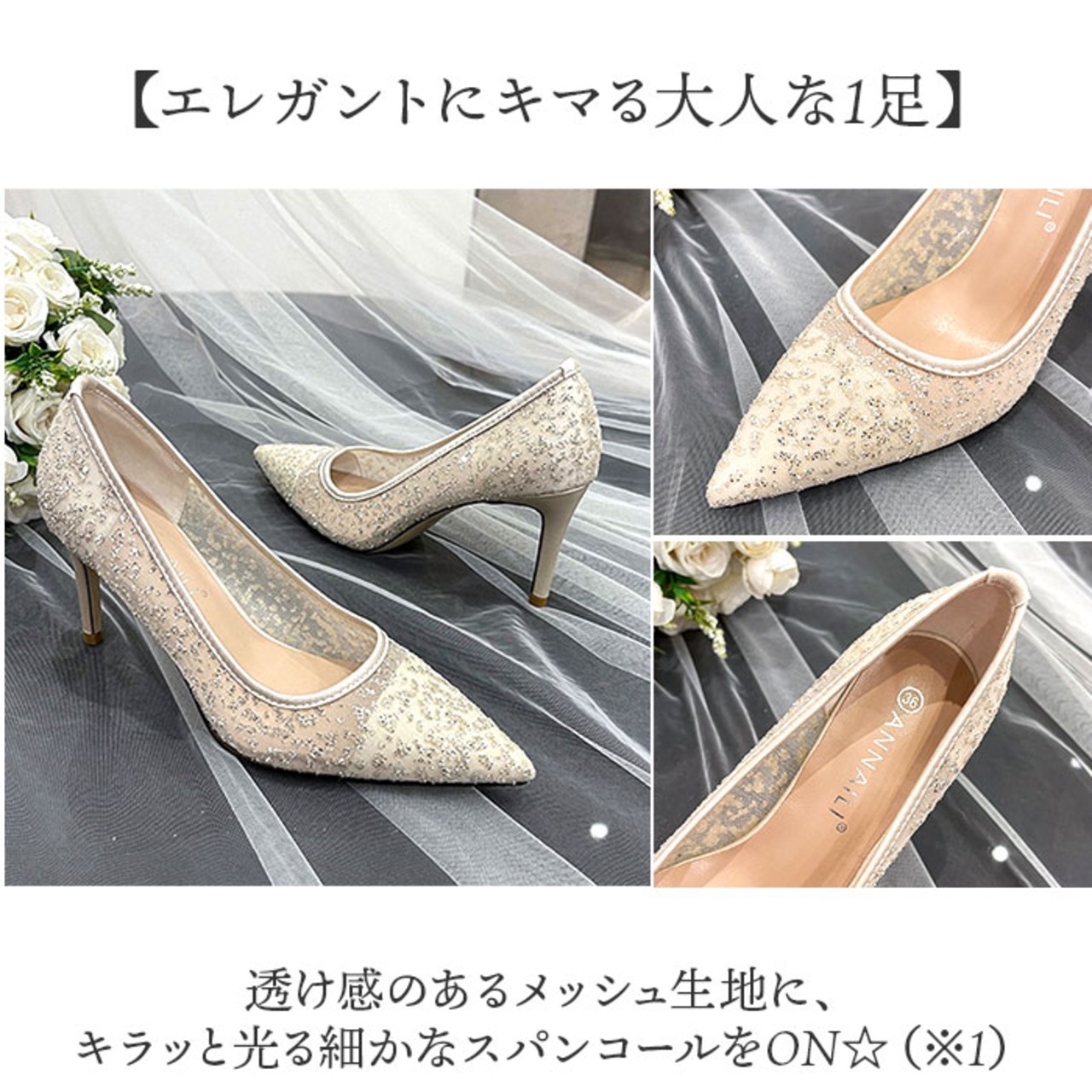 ・透け感のあるメッシュ生地に、キラッと光る細かなスパンコールをON☆