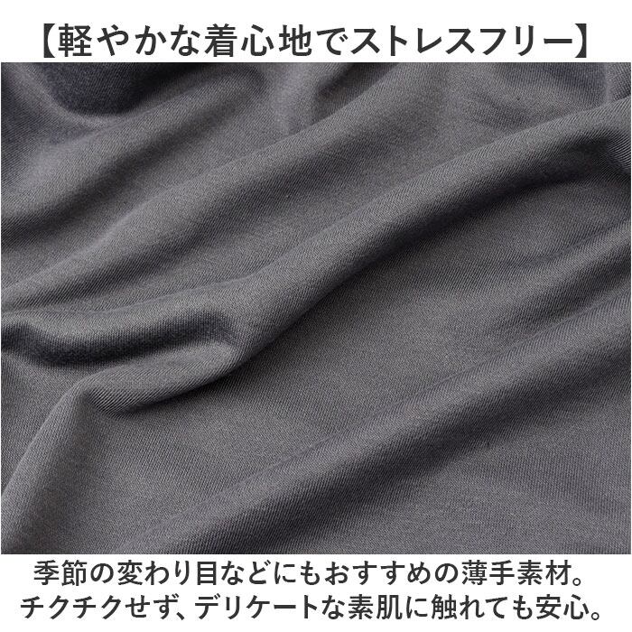 ・季節の変わり目などにもおすすめの薄手素材。チクチクせず、デリケートな素肌に触れても安心。