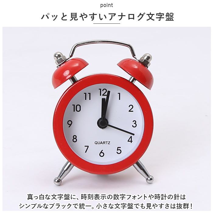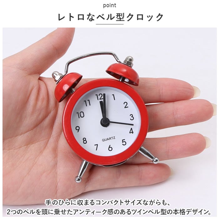 ・手のひらに収まるコンパクトサイズながらも、2つのベルを頭に乗せたアンティーク感のあるツインベル型の本格デザイン。