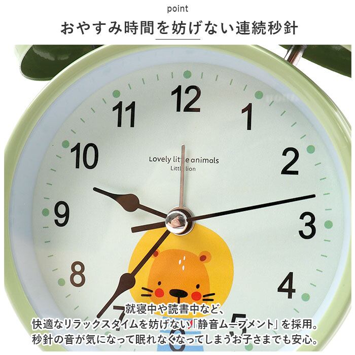 ・子ども部屋や、勉強部屋のデスクにもすっきり馴染む優しいくすみカラー。ボーダーのパジャマを着たアニマルと一緒にお布団に入れば、だれでも早起きのお利口さんに♪(※単3形乾電池1本使用。電池は別売りです。)