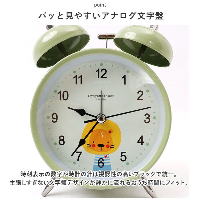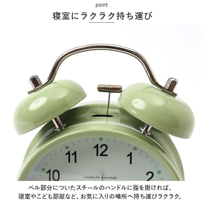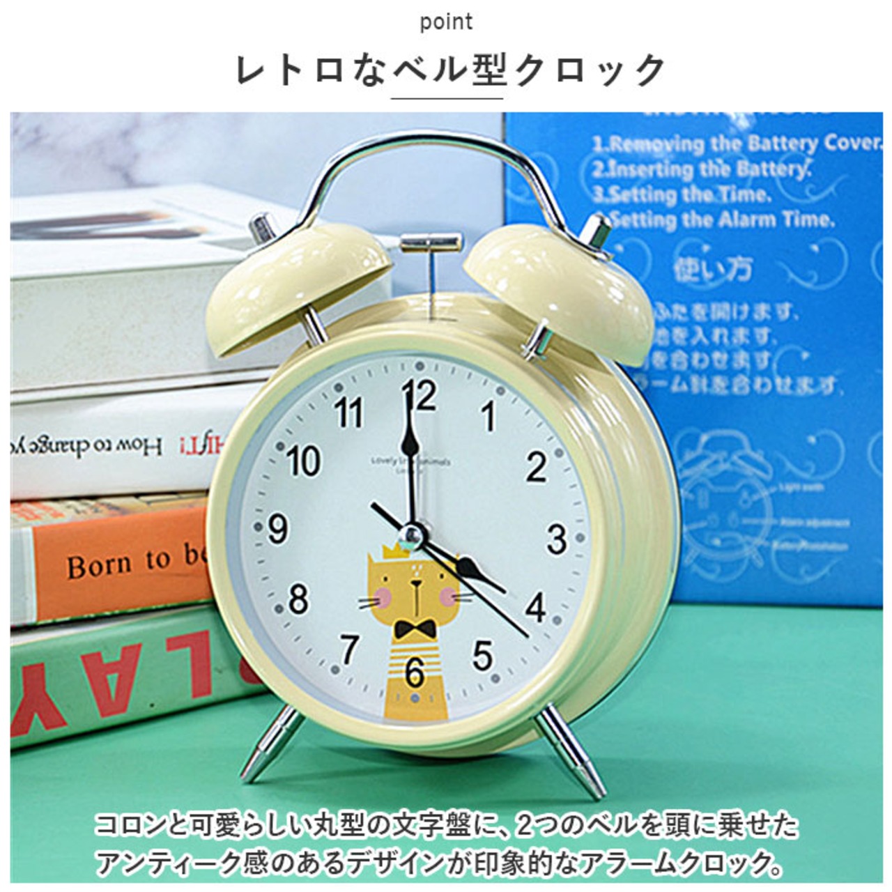 ・文字盤の中のアニマルたちがお目覚め時刻をお知らせ♪レトロ可愛い雰囲気が魅力の「ツインベル型目覚まし時計」