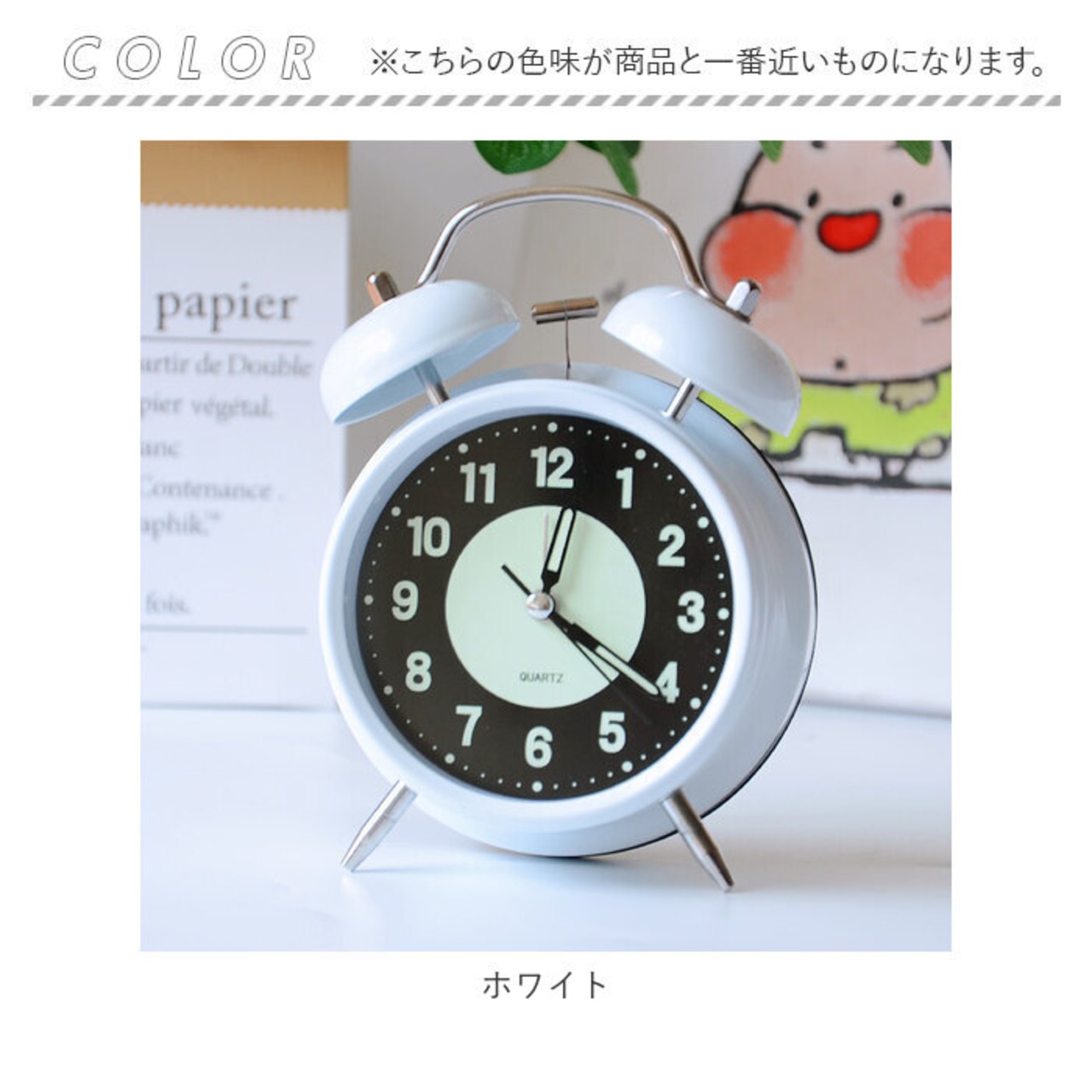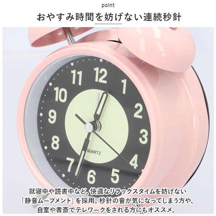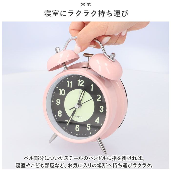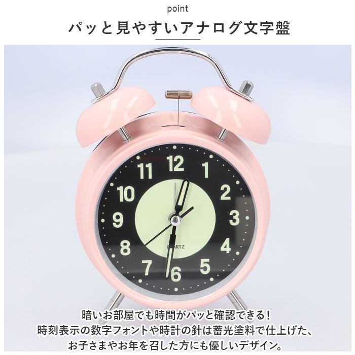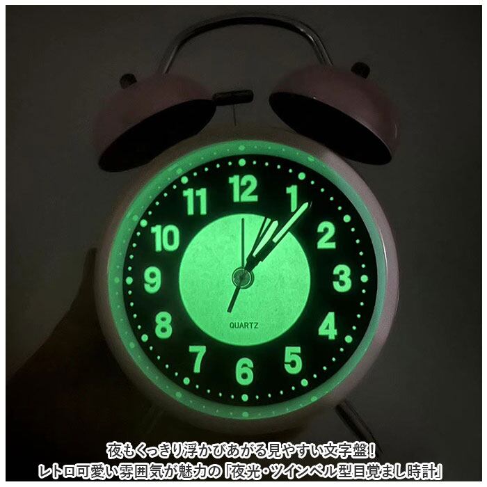 ・夜もくっきり浮かびあがる見やすい文字盤!レトロ可愛い雰囲気が魅力の「夜光・ツインベル型目覚まし時計」