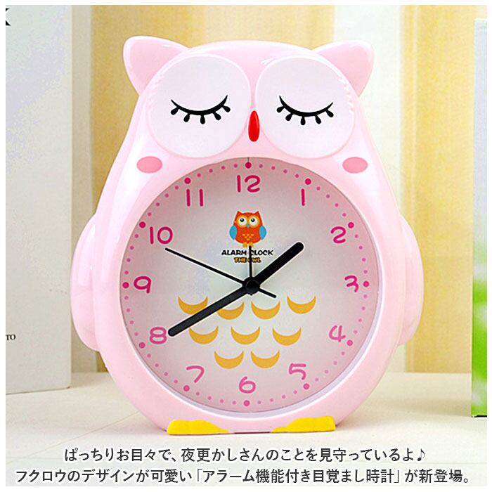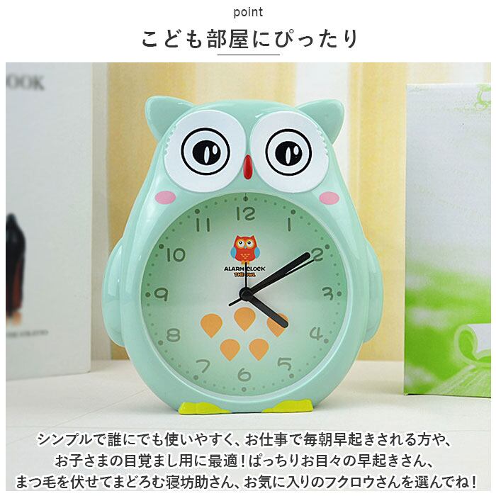・シンプルで誰にでも使いやすく、お仕事で毎朝早起きされる方や、お子さまの目覚まし用に最適!ぱっちりお目々の早起きさん、まつ毛を伏せてまどろむ寝坊助さん、お気に入りのフクロウさんを選んでね!(※単3形乾電池1本使用。電池は別売りです。)