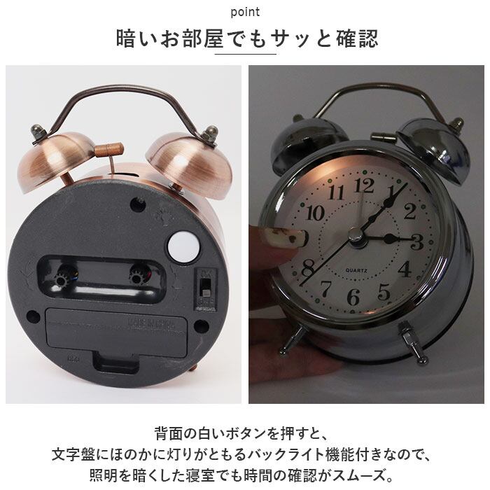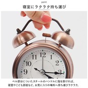 ・艶やかなメタリックカラーと、どこか懐かしい雰囲気がお部屋のアクセントに♪シンプルで見やすい「ベル型目覚まし時計」