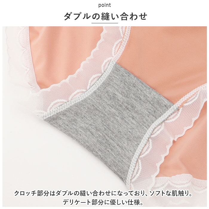 ・クロッチ部分はダブルの縫い合わせになっており、ソフトな肌触り。デリケート部分に優しい仕様。