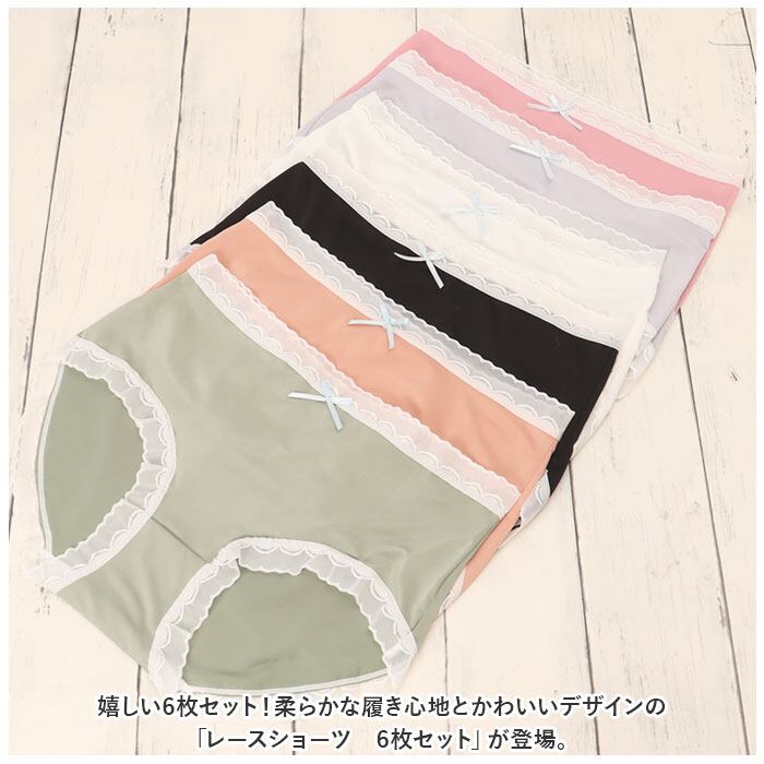 ・嬉しい6枚セット!柔らかな履き心地とかわいいデザインの「レースショーツ 6枚セット」が登場。