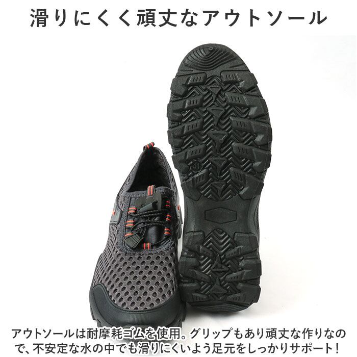 ・アウトソールは耐摩耗ゴムを使用。グリップもあり頑丈な作りなので、不安定な水の中でも滑りにくいよう足元をしっかりサポート!