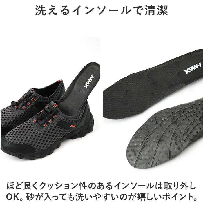 ・メッシュのアッパーは抜群の通気性でムレを防止し、水抜けも早い。速乾性のある作りで濡れても快適♪