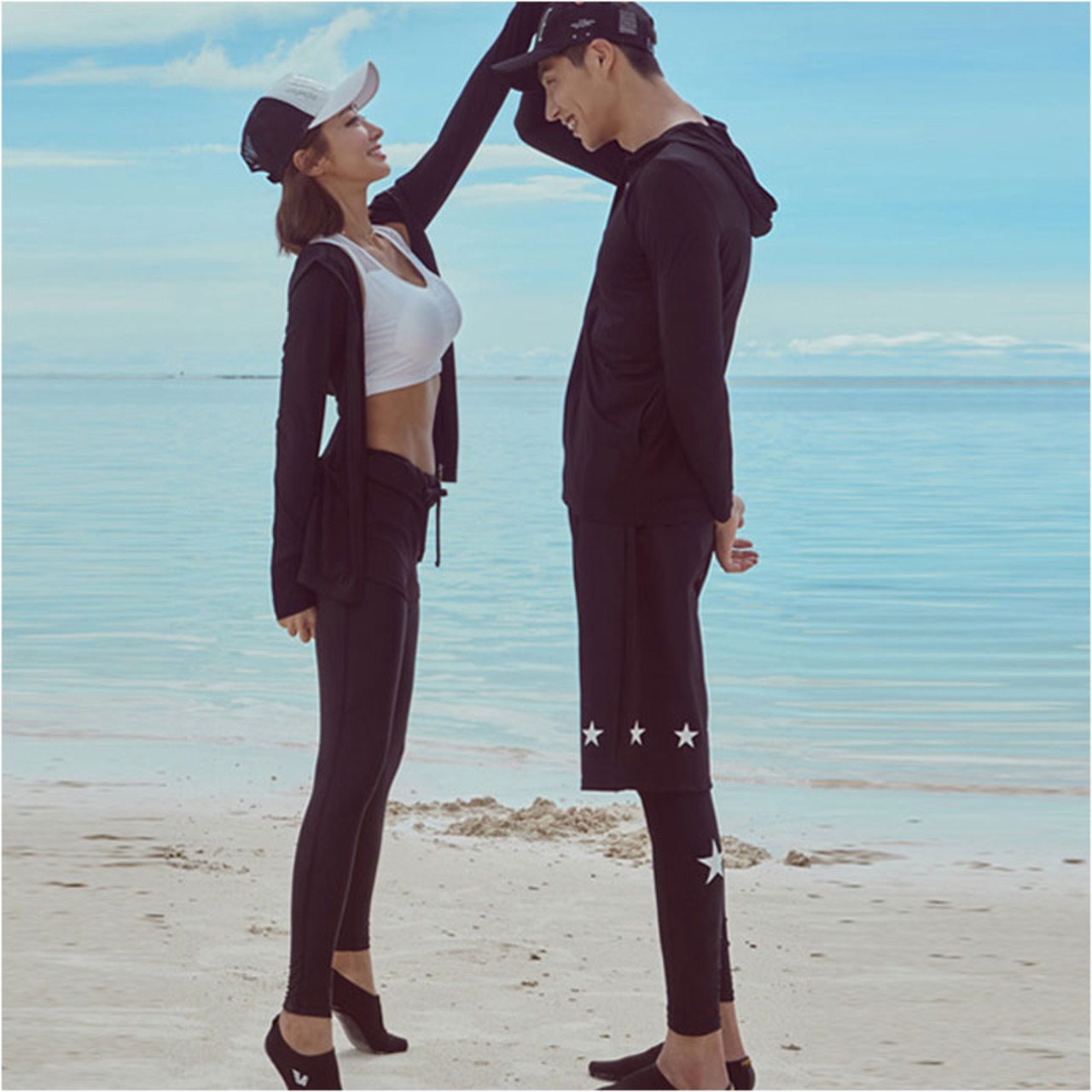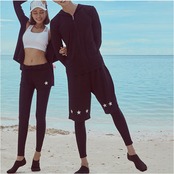 ・ロングタイプのラッシュガードとレギンスは、気になる強い日射しから肌を守る!