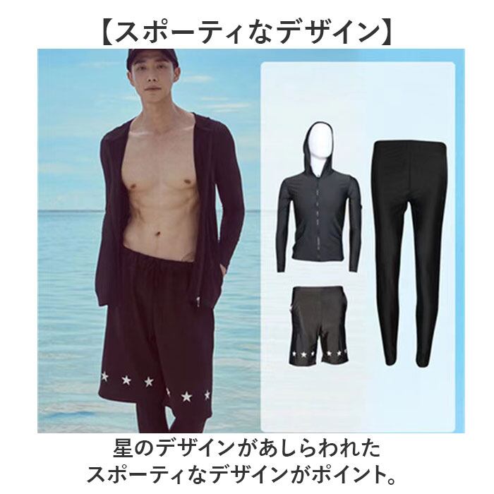 ラッシュガードセット 水着 メンズ 通販 ラッシュ ガード セットアップ 長袖 上下セット フード付き レギンス 水陸両用 上着 パーカー 前開き 薄手 海水浴 プール サーフパンツ アウトドア スポーツ マリンウェア マリンスポーツ メンズファッション