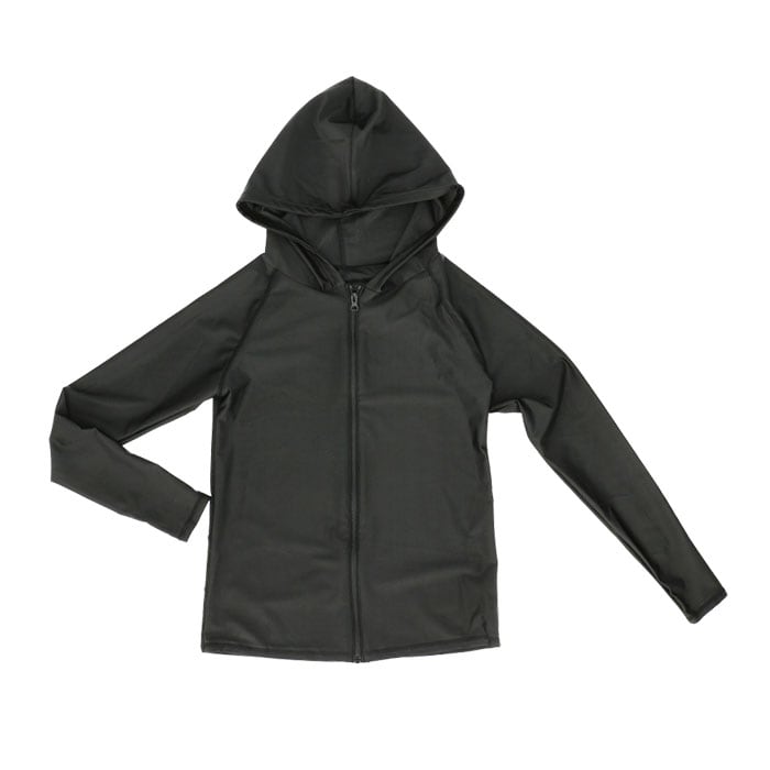 ・素肌にサッと羽織れるフロントジップタイプ。