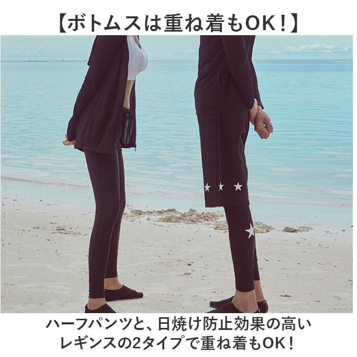 ・ハーフパンツと、日焼け防止効果の高いレギンスの2タイプで重ね着もOK!