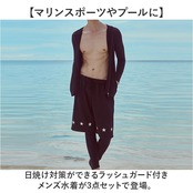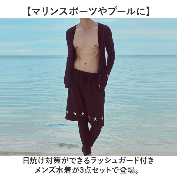 ・日焼け対策ができるラッシュガード付きメンズ水着が3点セットで登場。