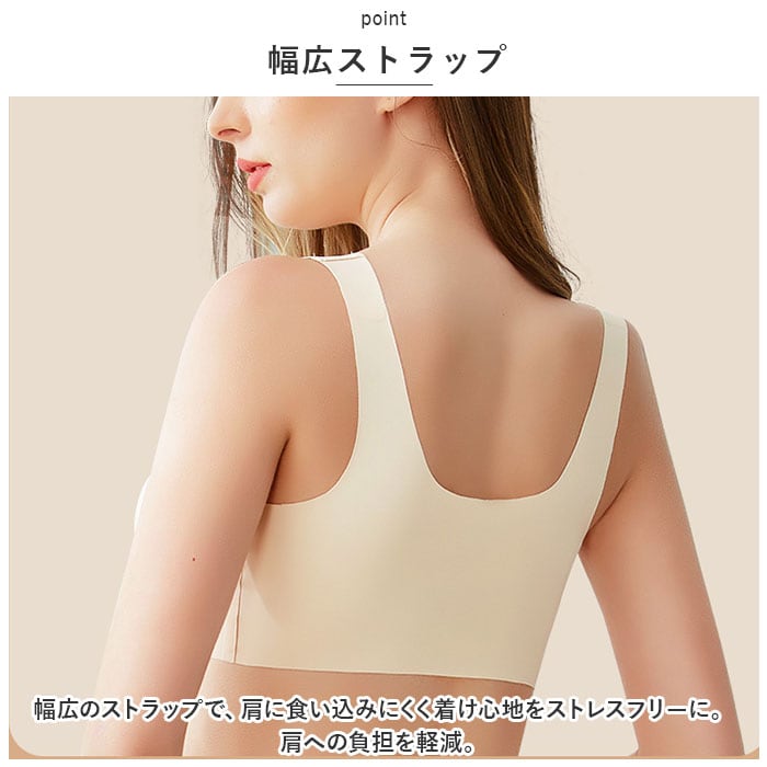 ・ホックも金具もなく、縫い目も少ないシームレス仕様。肌馴染みがよく、素肌のままのような感覚。お洋服にも響きにくい。