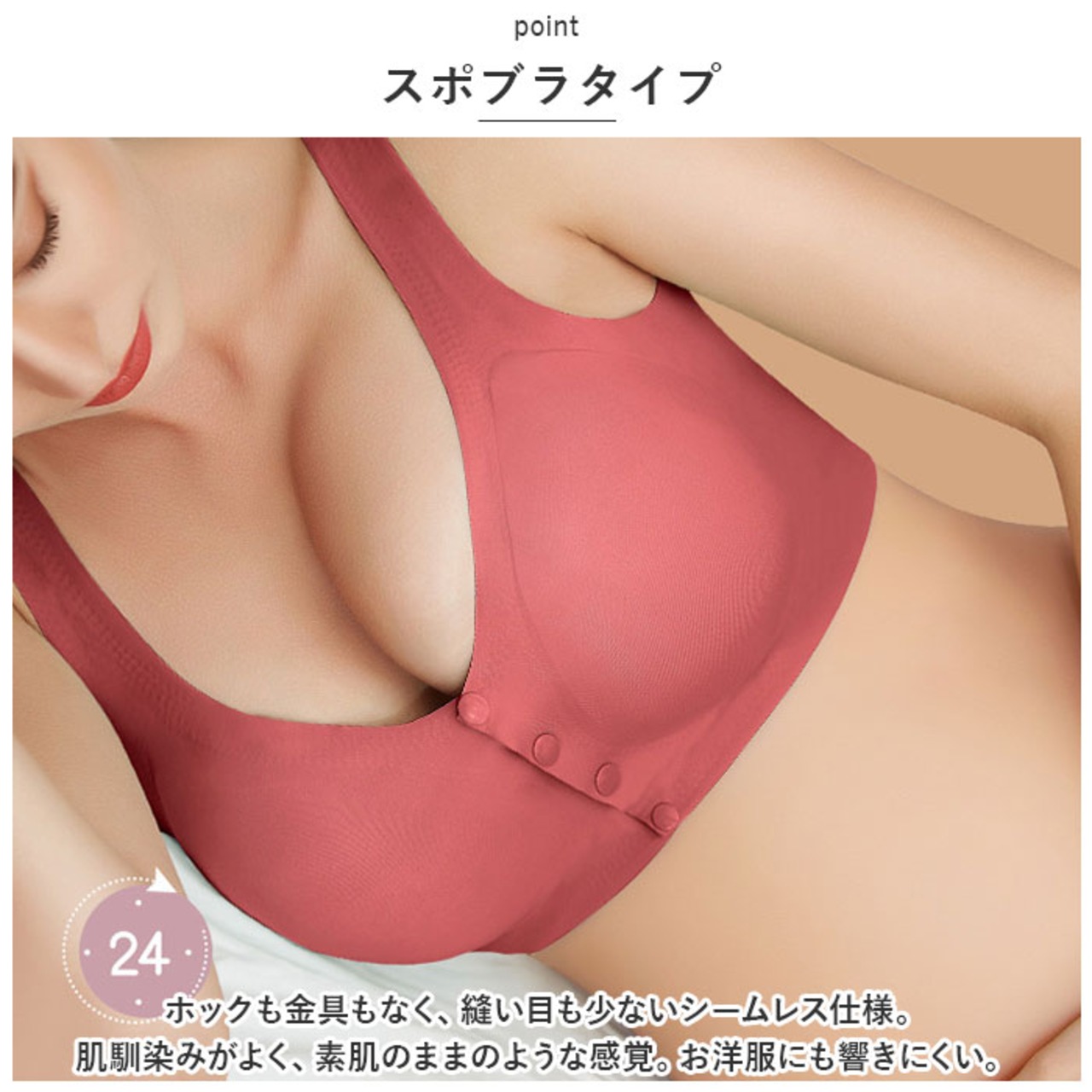 ・ホックも金具もなく、縫い目も少ないシームレス仕様。肌馴染みがよく、素肌のままのような感覚。お洋服にも響きにくい。