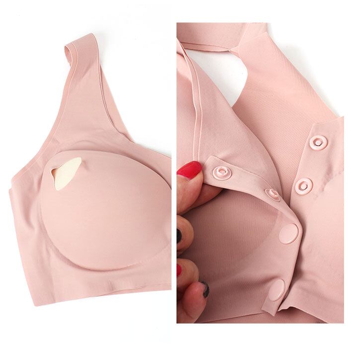 ・ブラを着けたまま授乳ができる。フロント部分のスナップボタンを外すだけの手間いらず◎