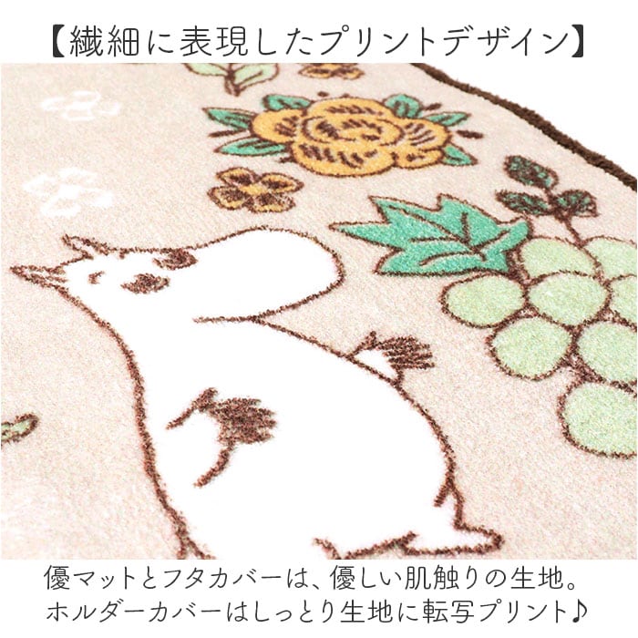 ・マットとフタカバーは、優しい肌触りの生地。ホルダーカバーはしっとり生地に転写プリント♪