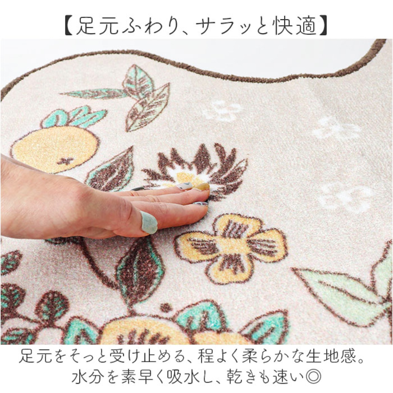 ・足元をそっと受け止める、程よく柔らかな生地感。水分を素早く吸水し、乾きも速い◎