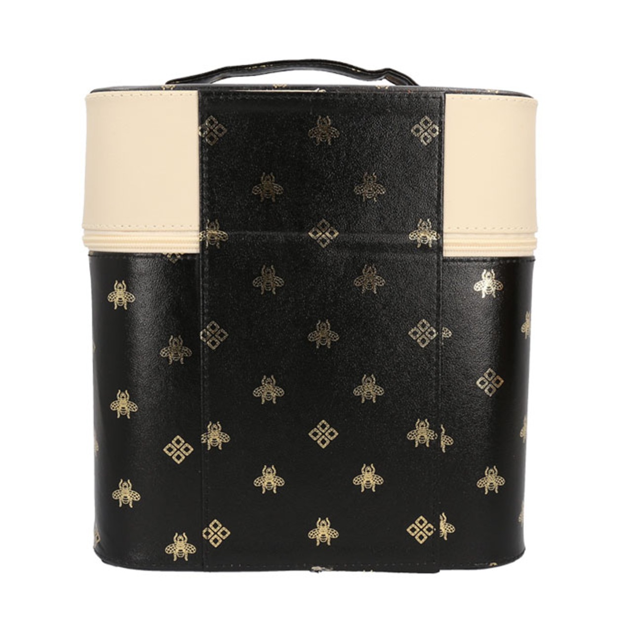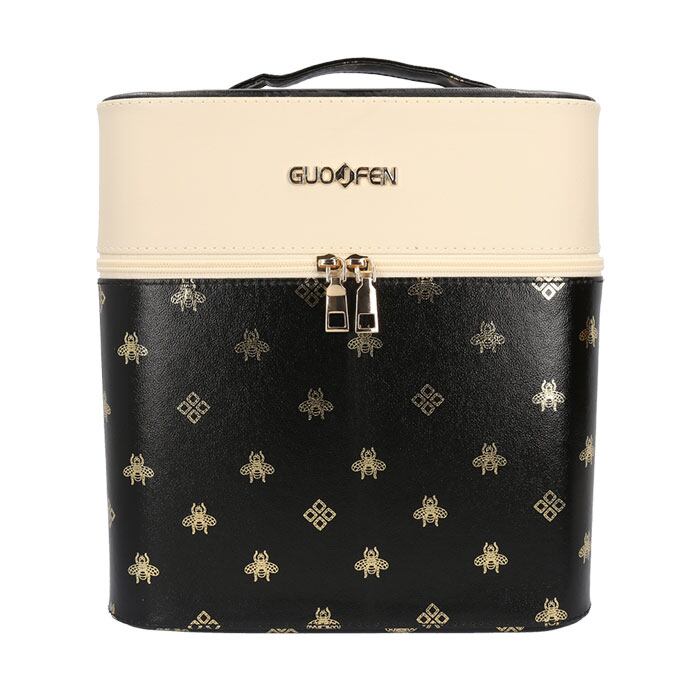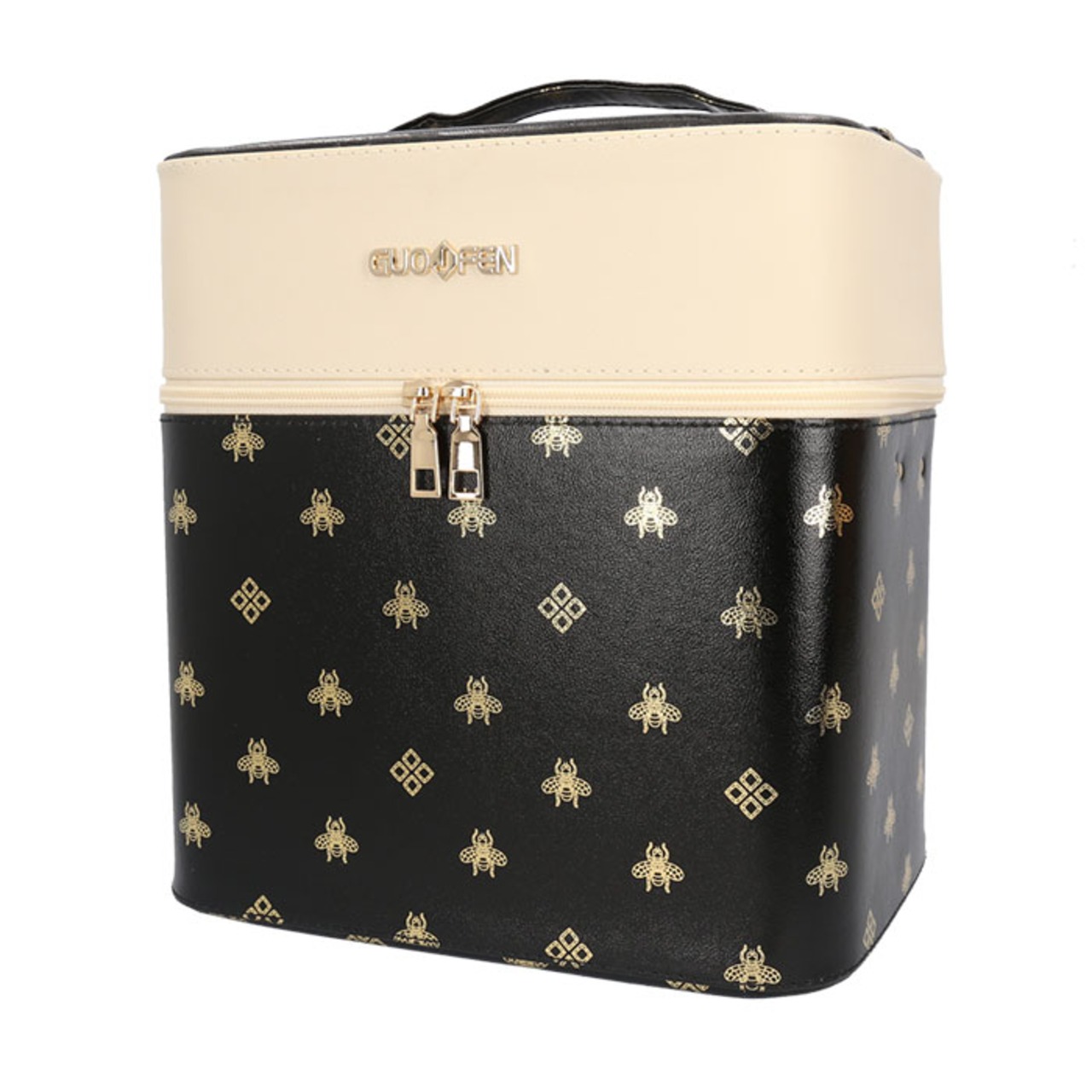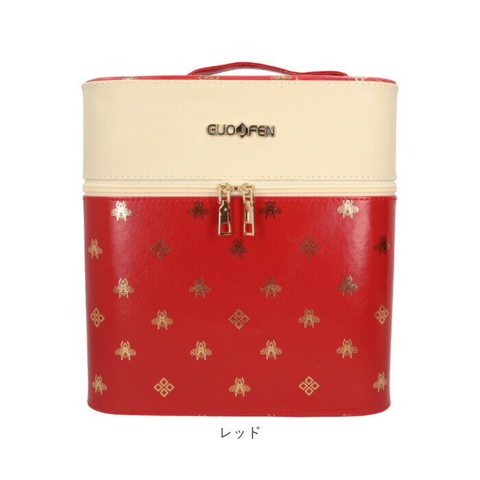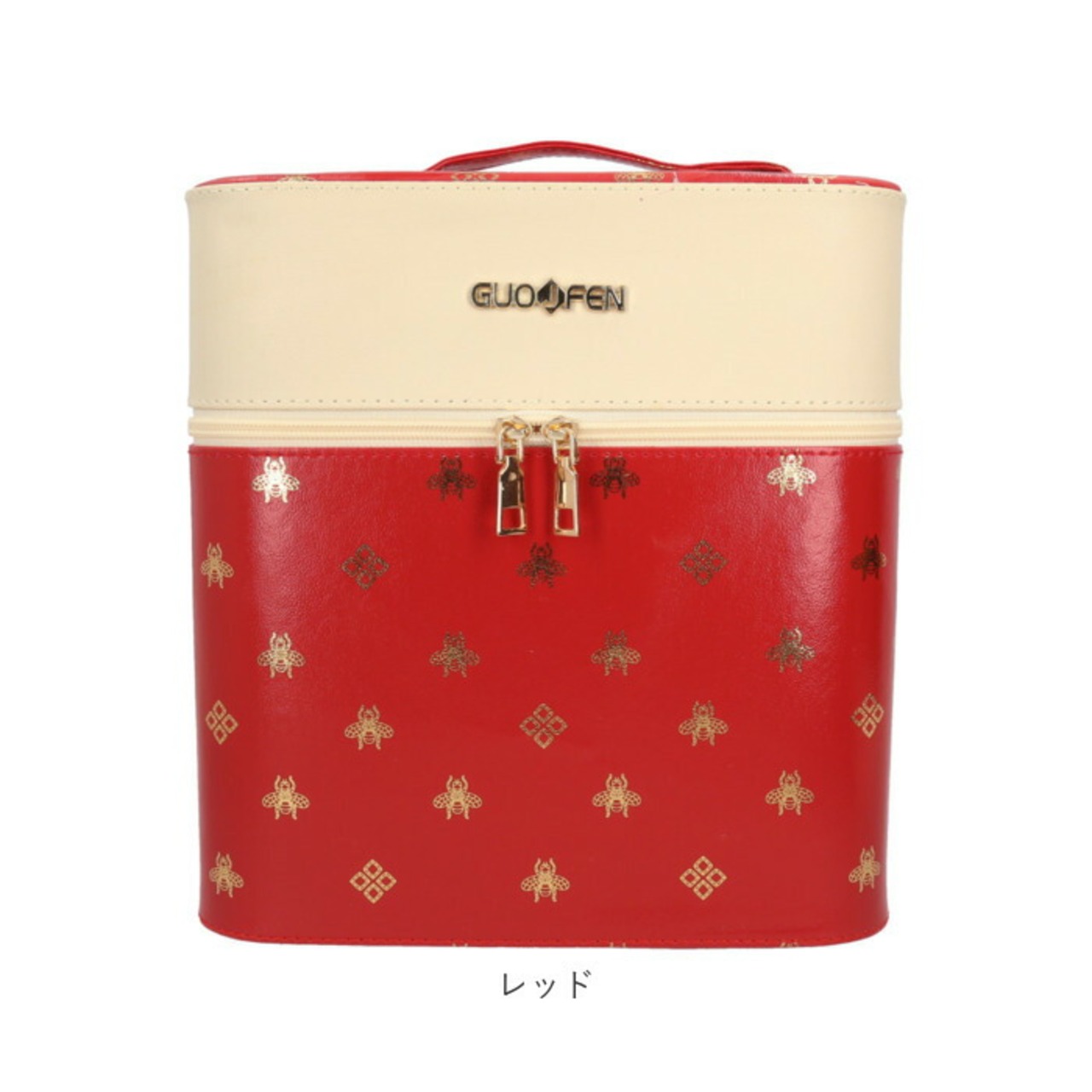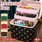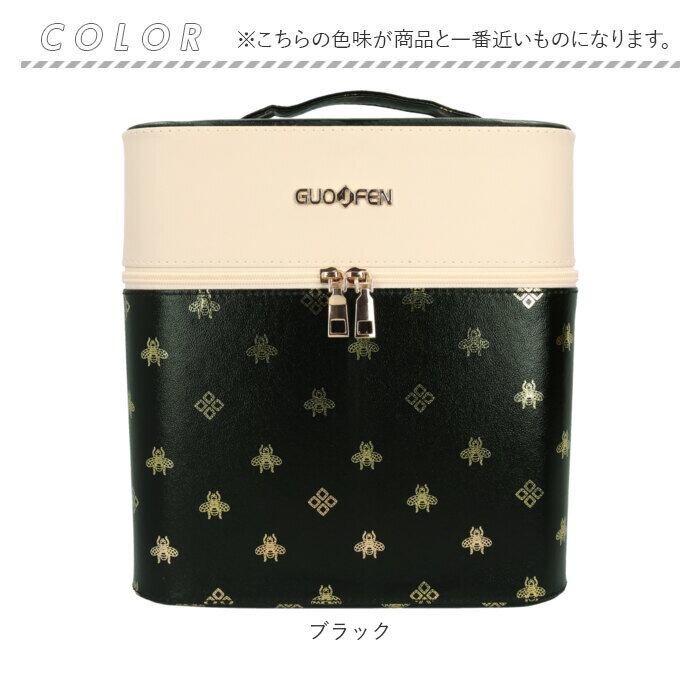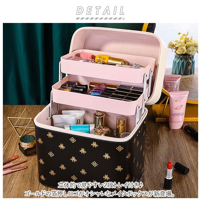 ・立体的で見やすい2段トレイ付き♪ゴールドの箔押しロゴがオシャレなメイクボックスが新登場。