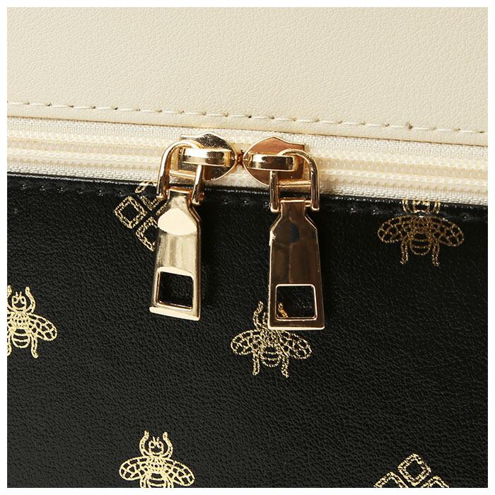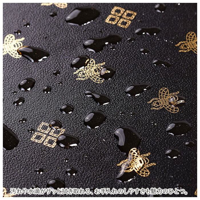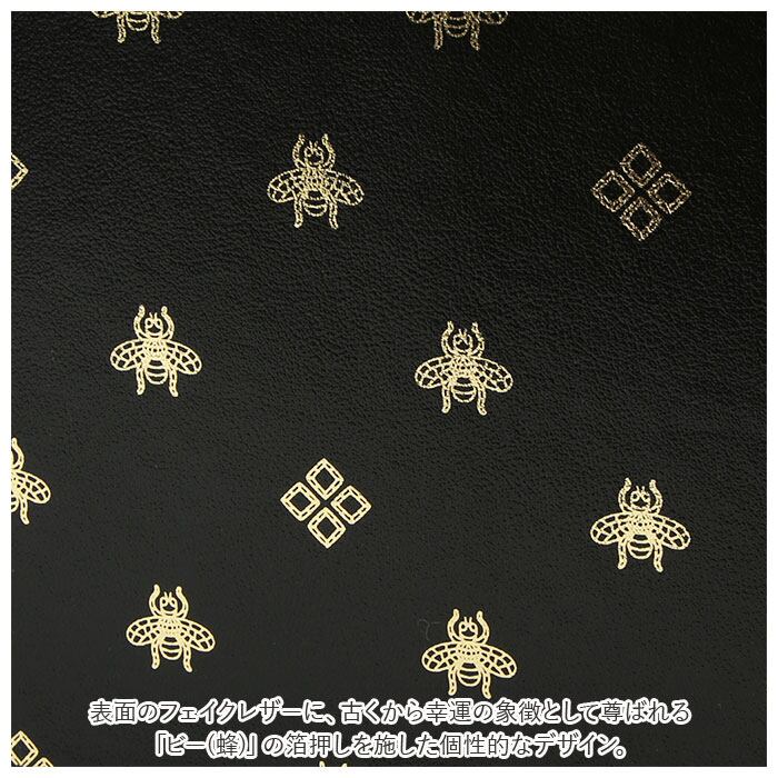 ・表面のフェイクレザーに、古くから幸運の象徴として尊ばれる「ビー(蜂)」の箔押しを施した個性的なデザイン。汚れや水滴がサッと拭き取れる、お手入れのしやすさも魅力のひとつ。