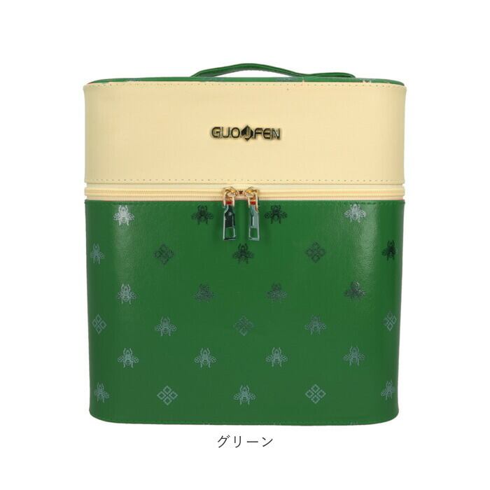 ・開口部のダブルファスナーを開放すると、上下2段のコスメトレーがボックス奥に向けてスライドオープンするシンプル構造。