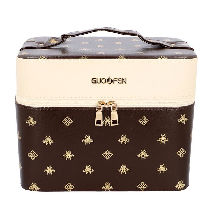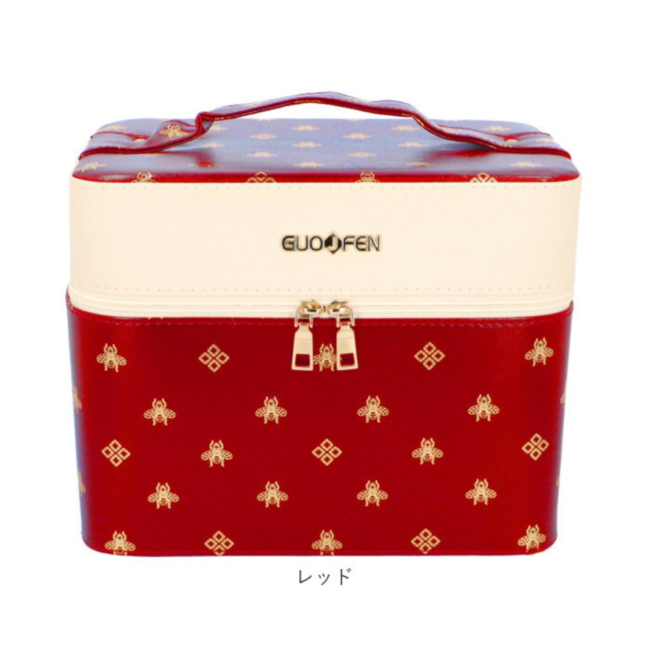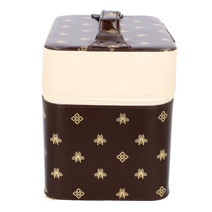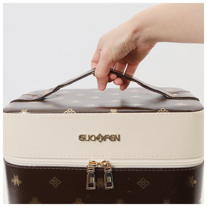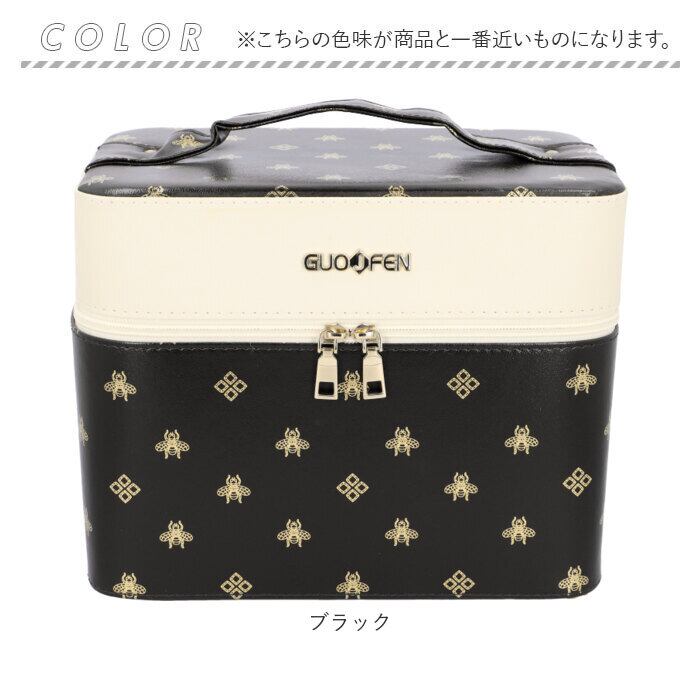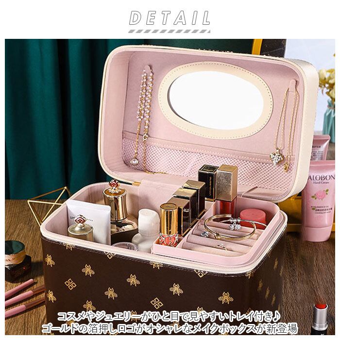 ※コスメやジュエリーがひと目で見やすいトレイ付き♪ゴールドの箔押しロゴがオシャレなメイクボックスが新登場。