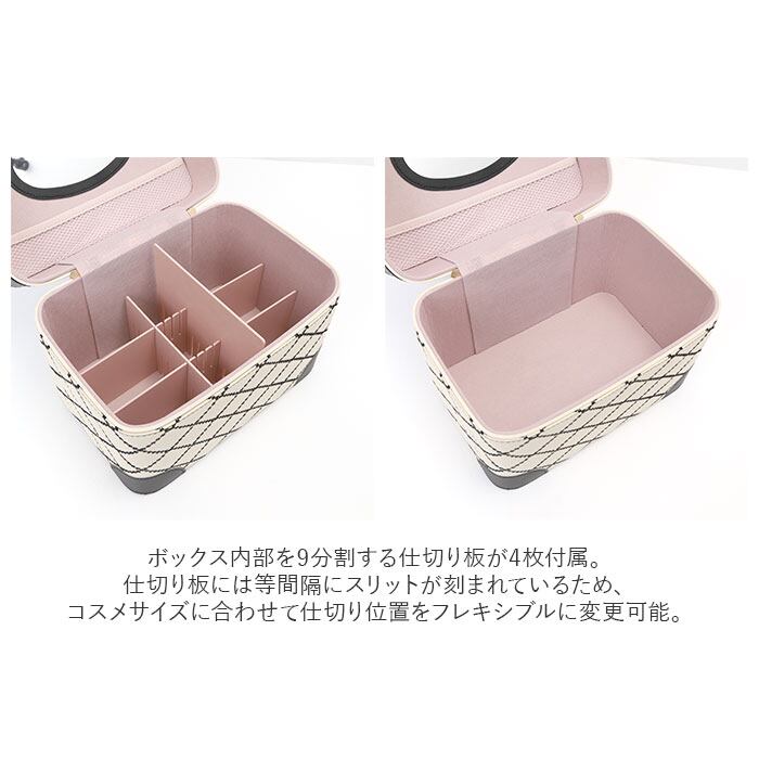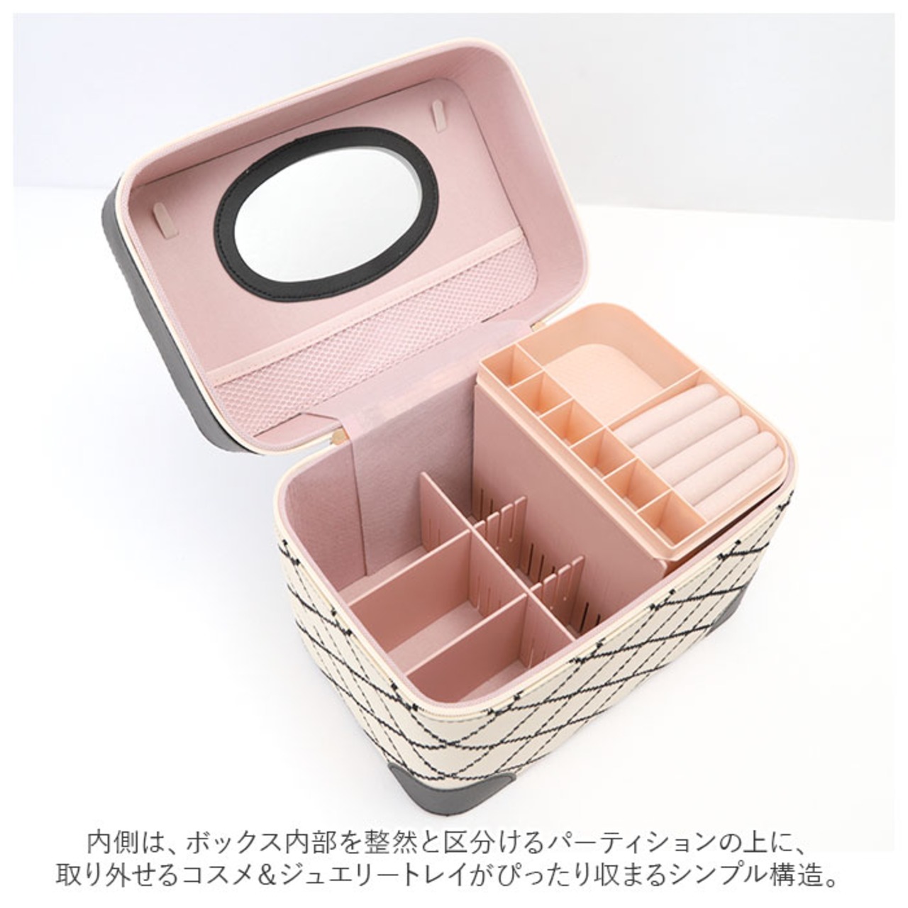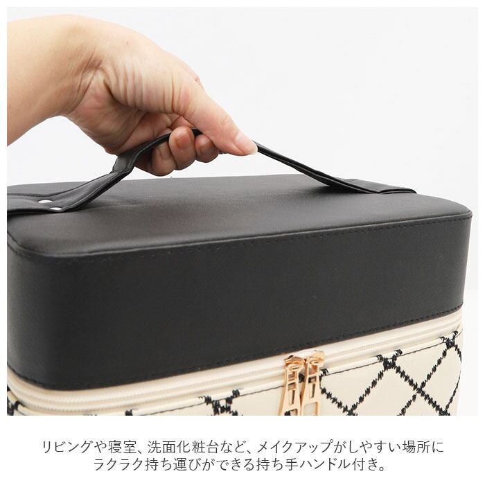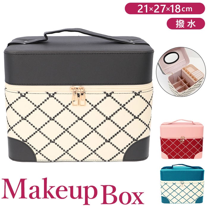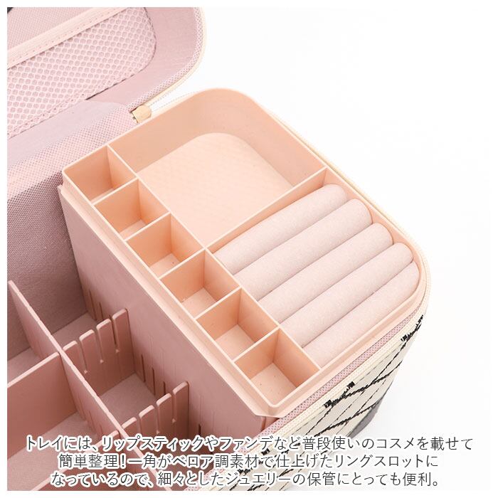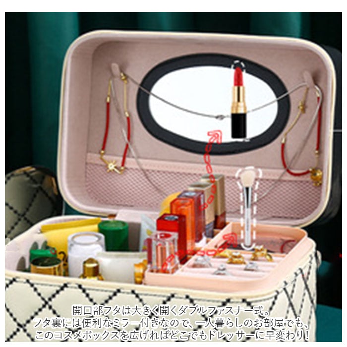 ・コスメやジュエリーがひと目で見やすいトレイ付き♪キルティングデザインが大人可愛いメイクボックスが新登場。