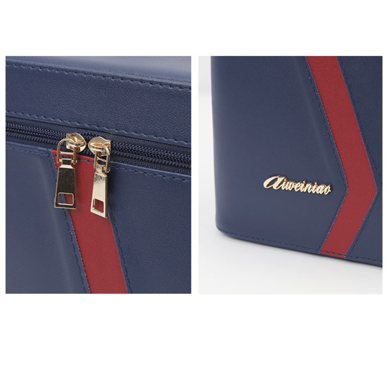 ・開口部のダブルファスナーを開放すると、長方形のコスメトレイがボックス奥に向けてスライドオープンする仕組み。