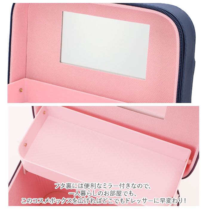 ・フタ裏には便利なミラー付きなので、一人暮らしのお部屋でも、このコスメボックスを広げればどこでもドレッサーに早変わり!