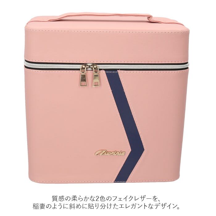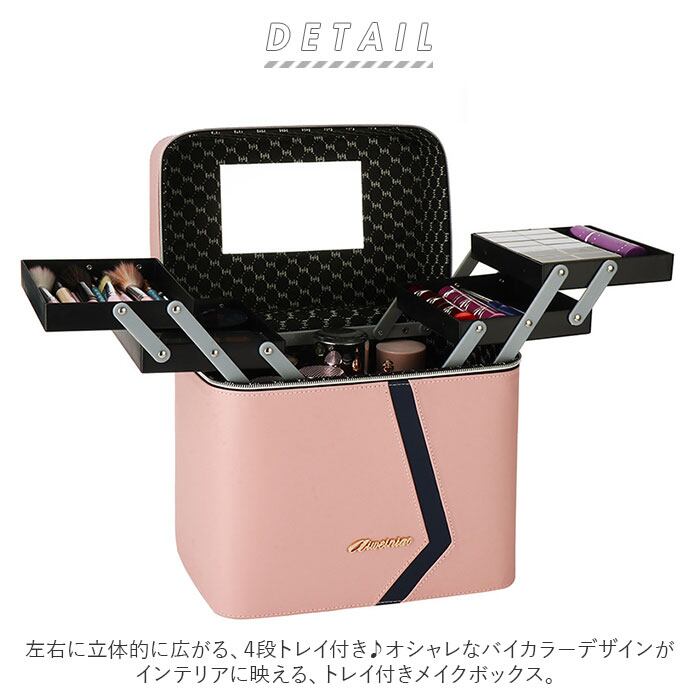 ・左右に立体的に広がる、4段トレイ付き♪オシャレなバイカラーデザインがインテリアに映える、トレイ付きメイクボックス。