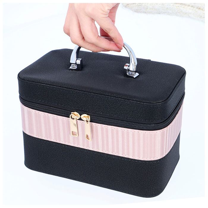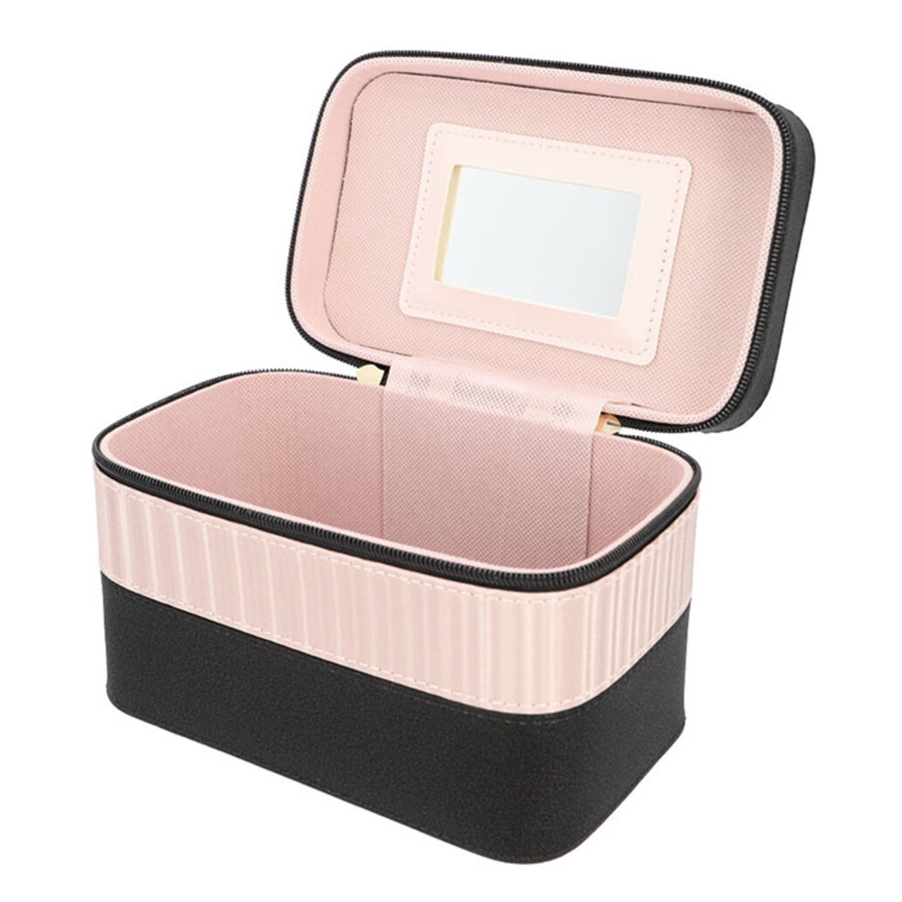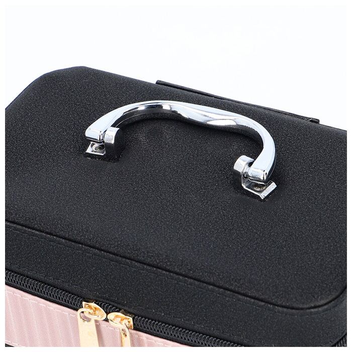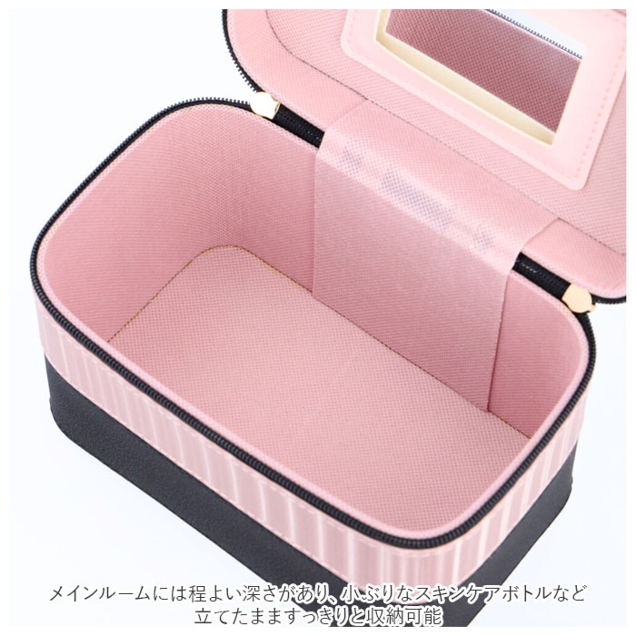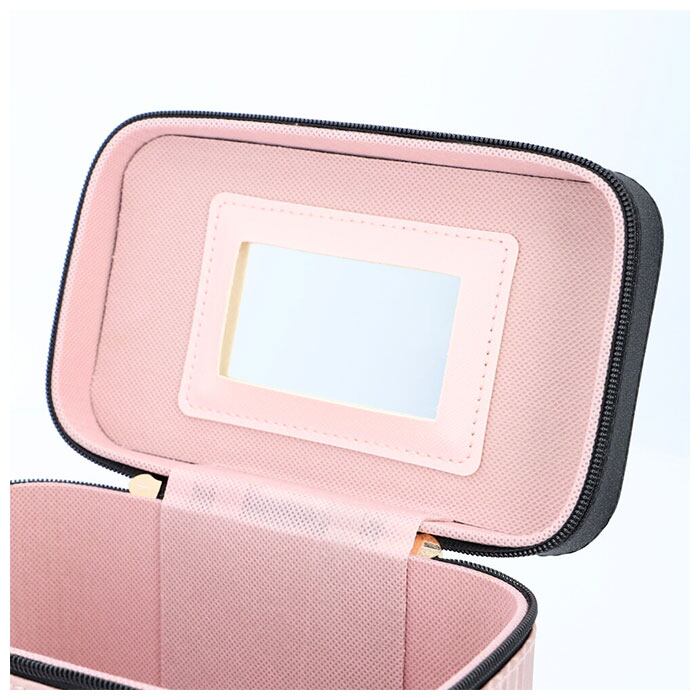 ・開口部フタは大きく開くダブルファスナー式。フタ裏には便利なミラー付きなので、一人暮らしのお部屋でも、このコスメボックスを広げればどこでもドレッサーに早変わり!
