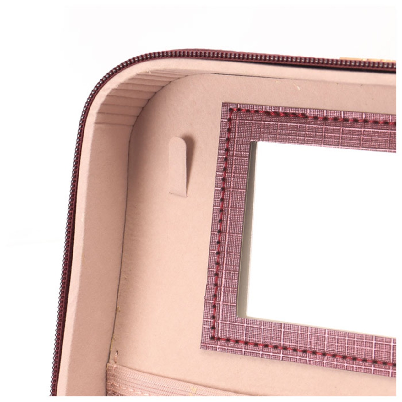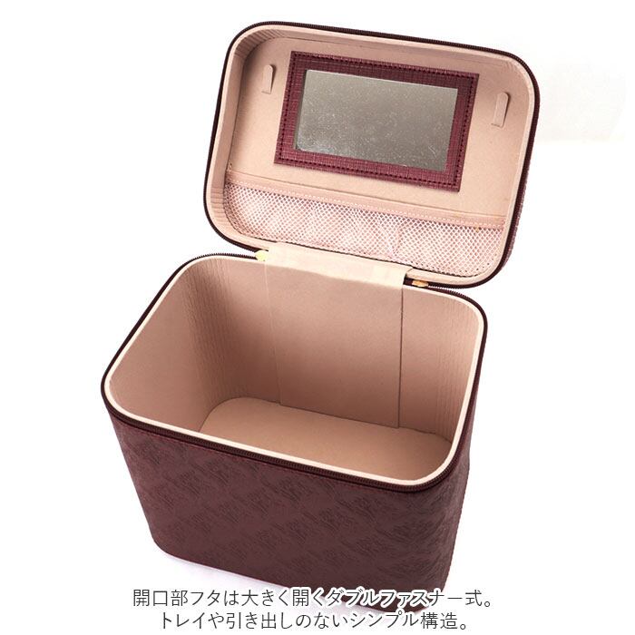・開口部フタは大きく開くダブルファスナー式。フタ裏には便利なミラー付きなので、一人暮らしのお部屋でも、このコスメボックスを広げればどこでもドレッサーに早変わり!