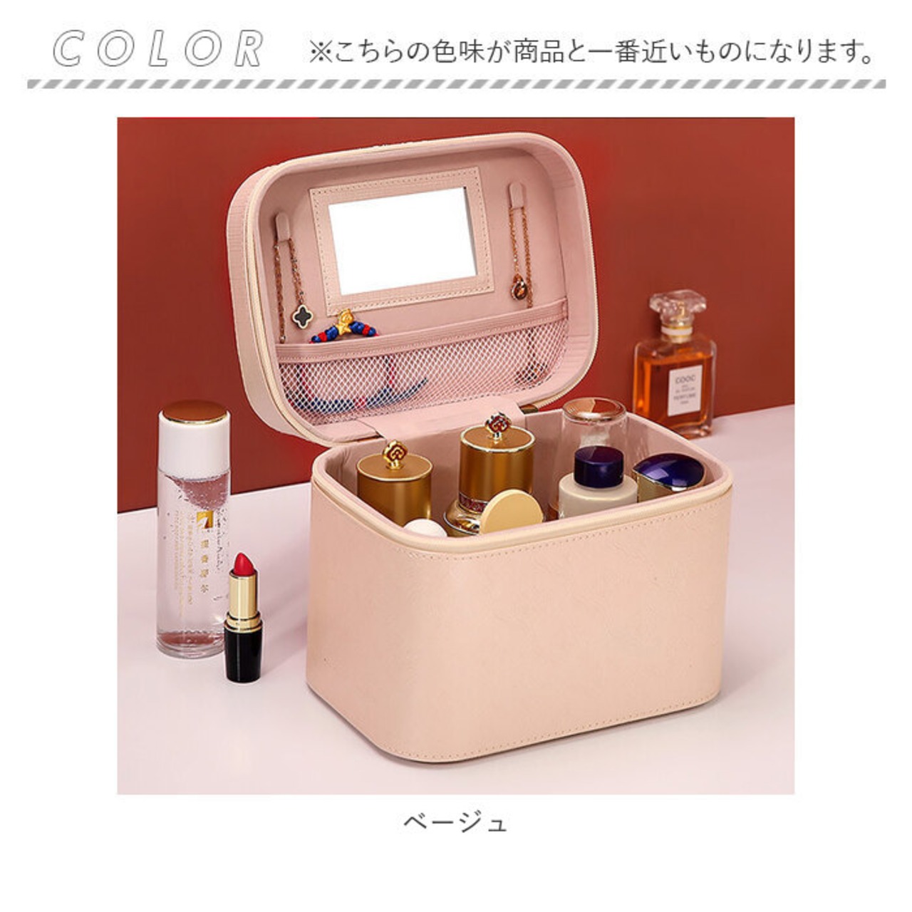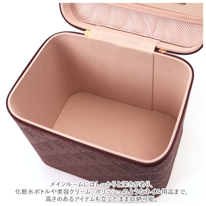 ・メインルームにはしっかりと深さがあり、化粧水ボトルや美容クリーム、ポリッシュのようなネイル用品まで、高さのあるアイテムも立てたまま収納可能。