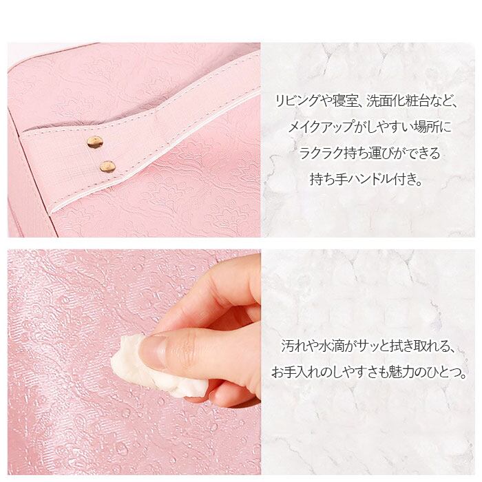 ・リビングや寝室、洗面化粧台など、メイクアップがしやすい場所にラクラク持ち運びができる持ち手ハンドル付き。