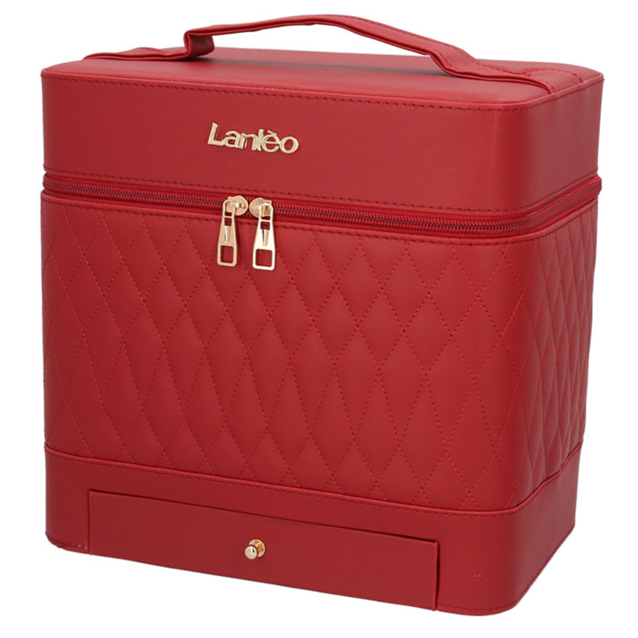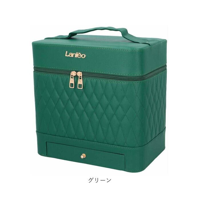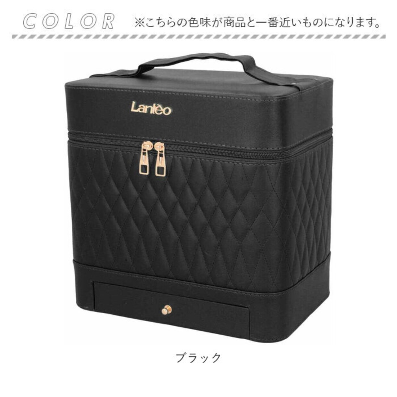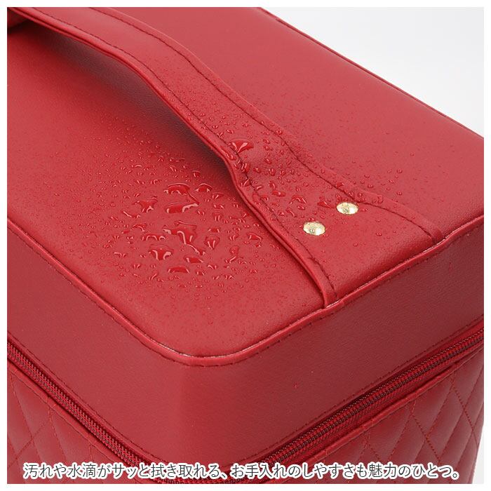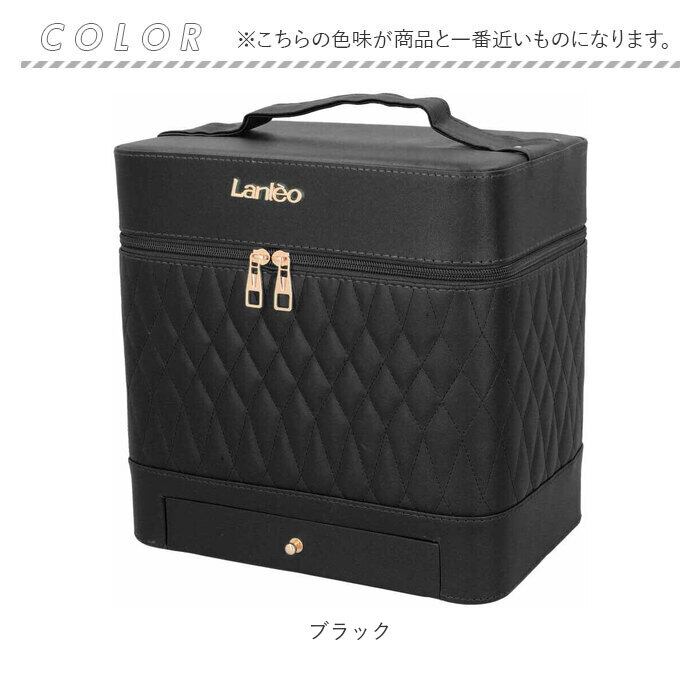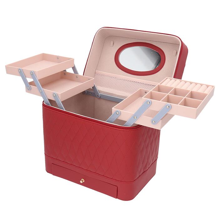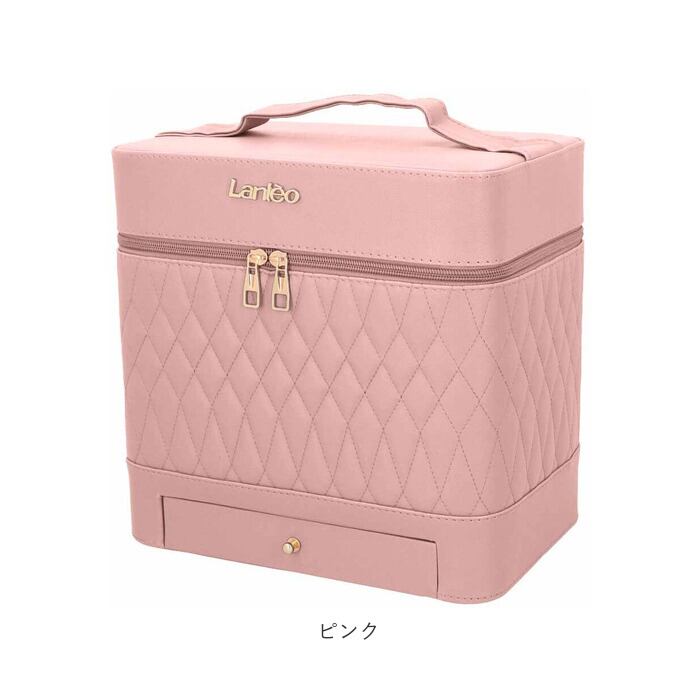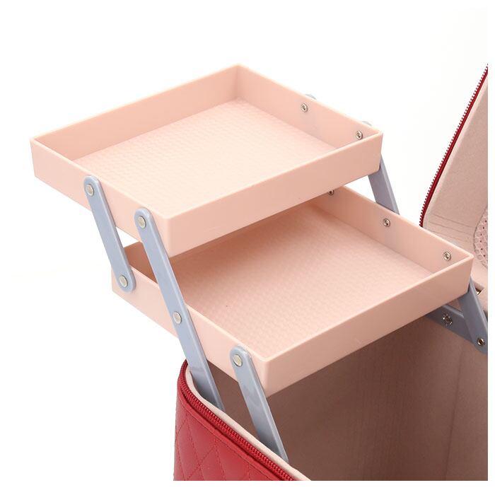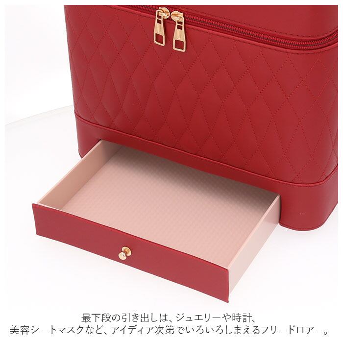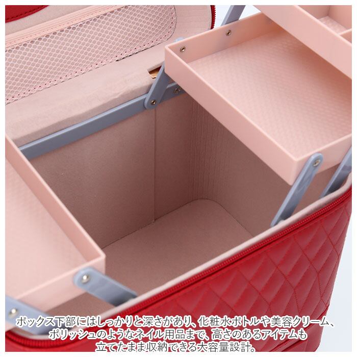 ・左右に立体的に広がる、4段トレイ付き♪キルティングデザインが大人可愛い、トレイ付きメイクボックス。