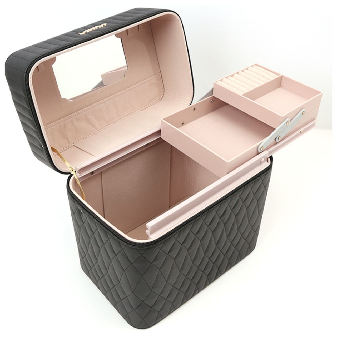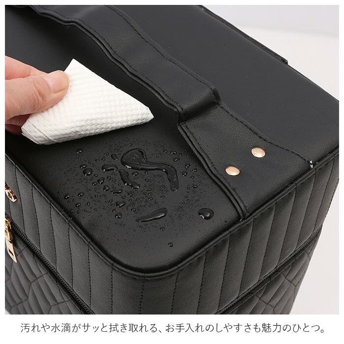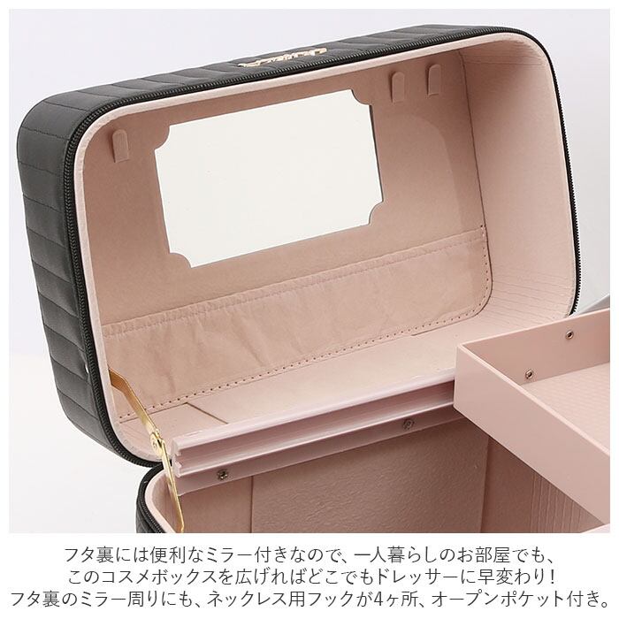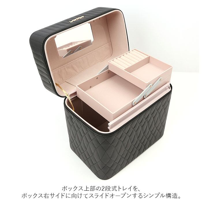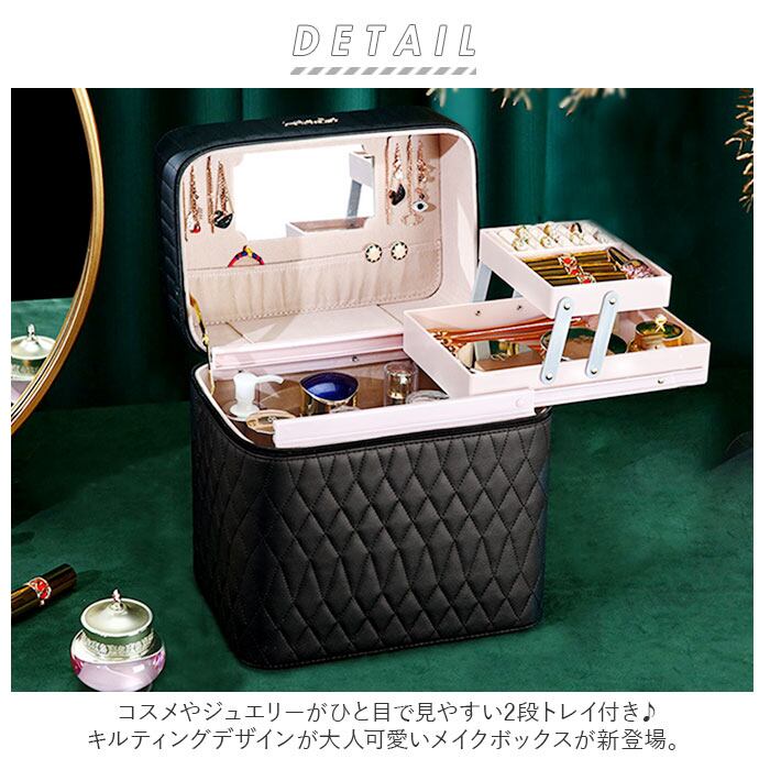 ・コスメやジュエリーがひと目で見やすい2段トレイ付き♪キルティングデザインが大人可愛いメイクボックスが新登場。