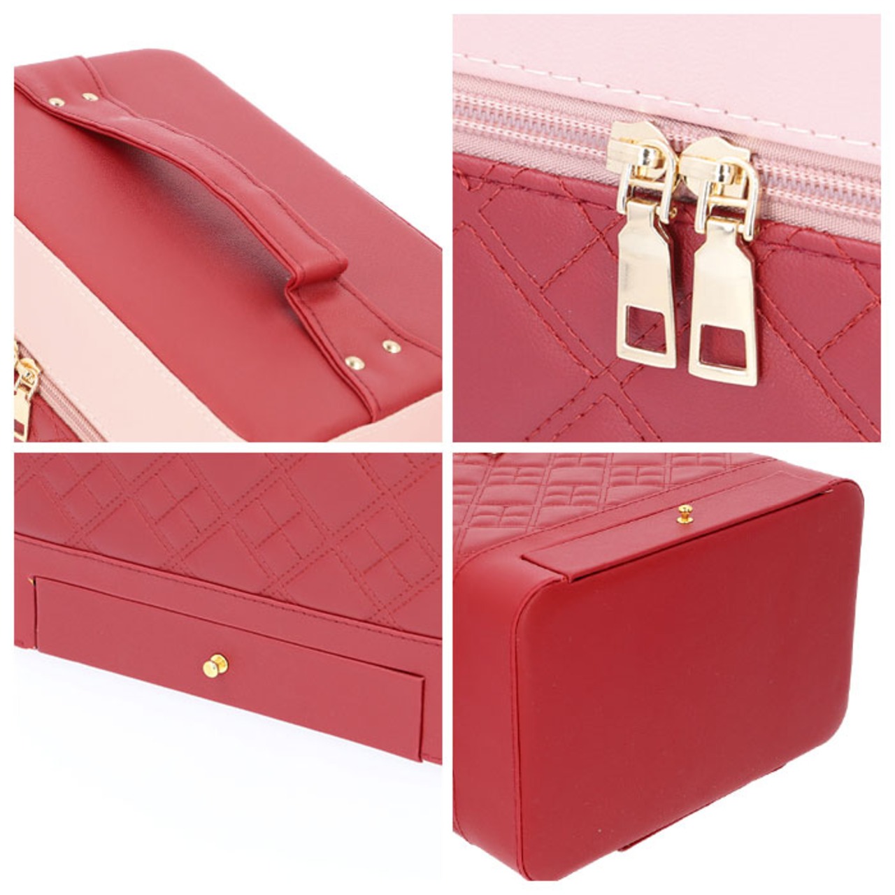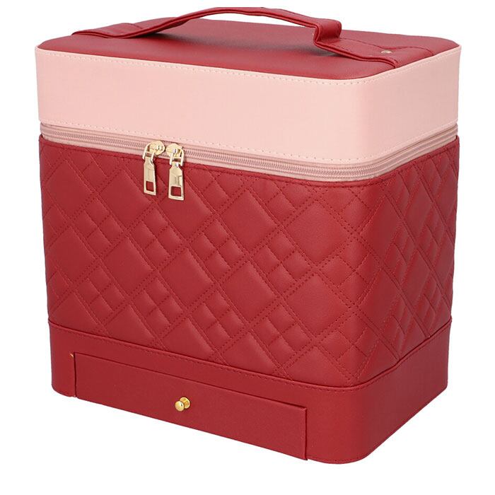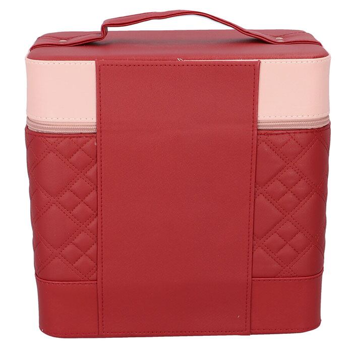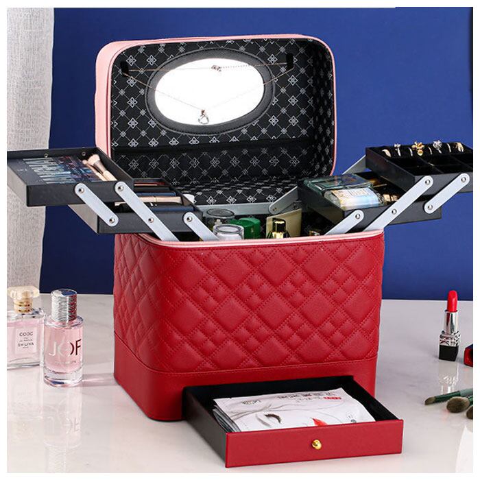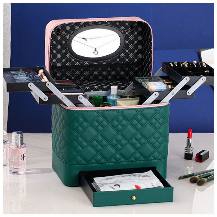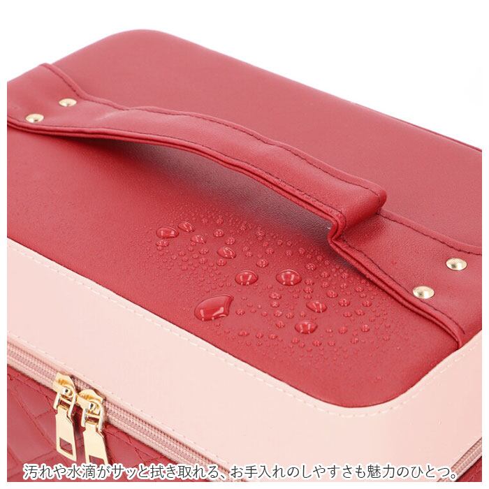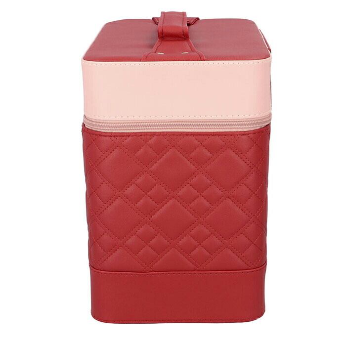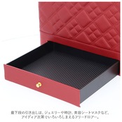 ・左右に立体的に広がる、4段トレイ付き♪キルティングデザインが大人可愛い、トレイ付きメイクボックス。