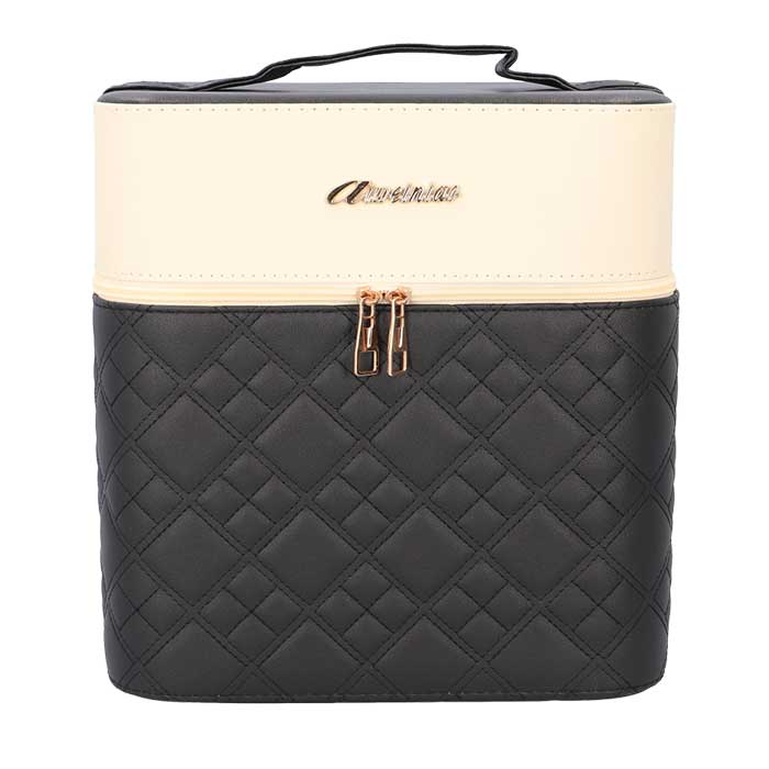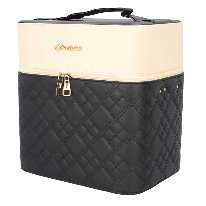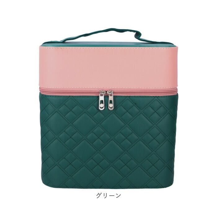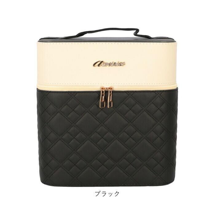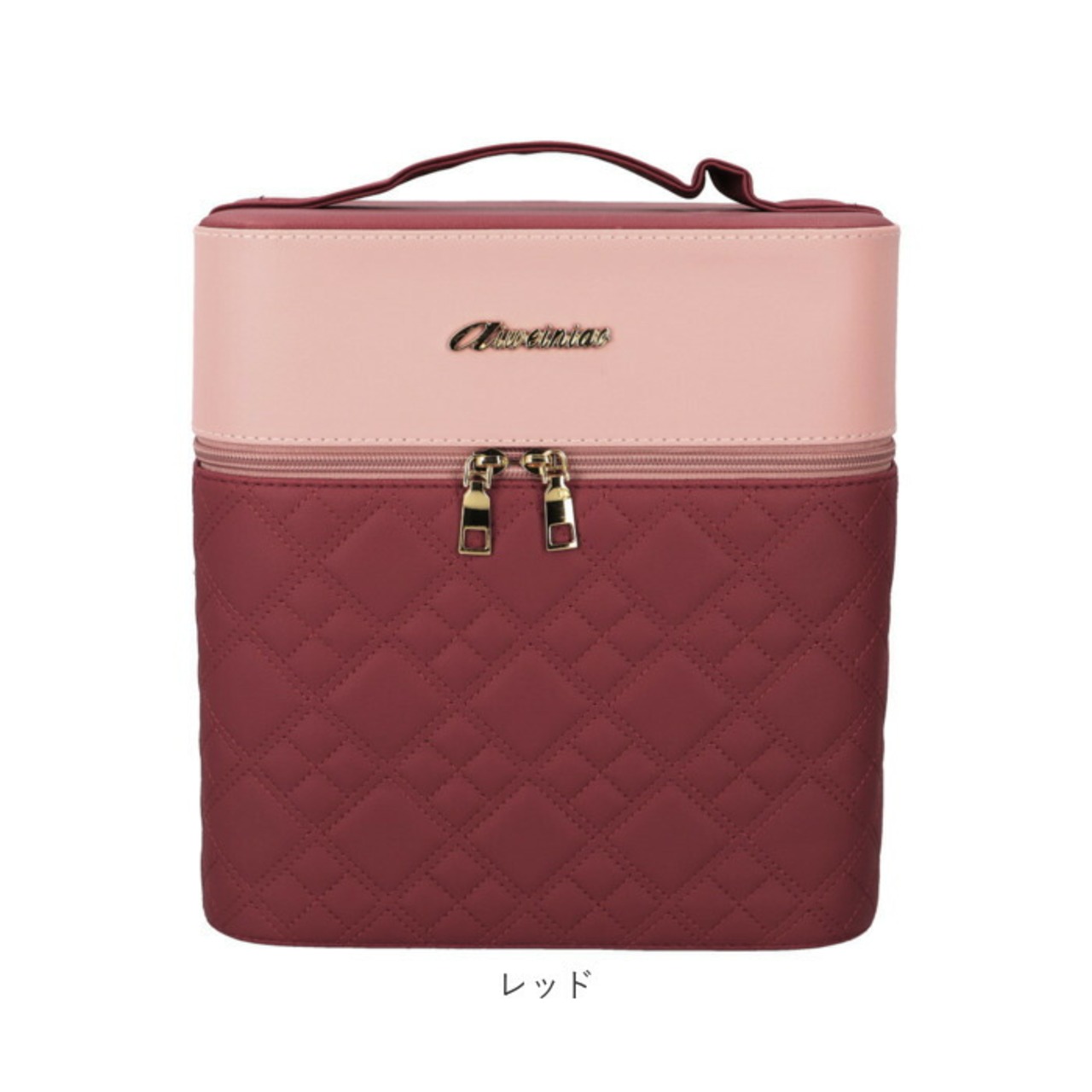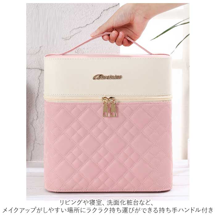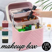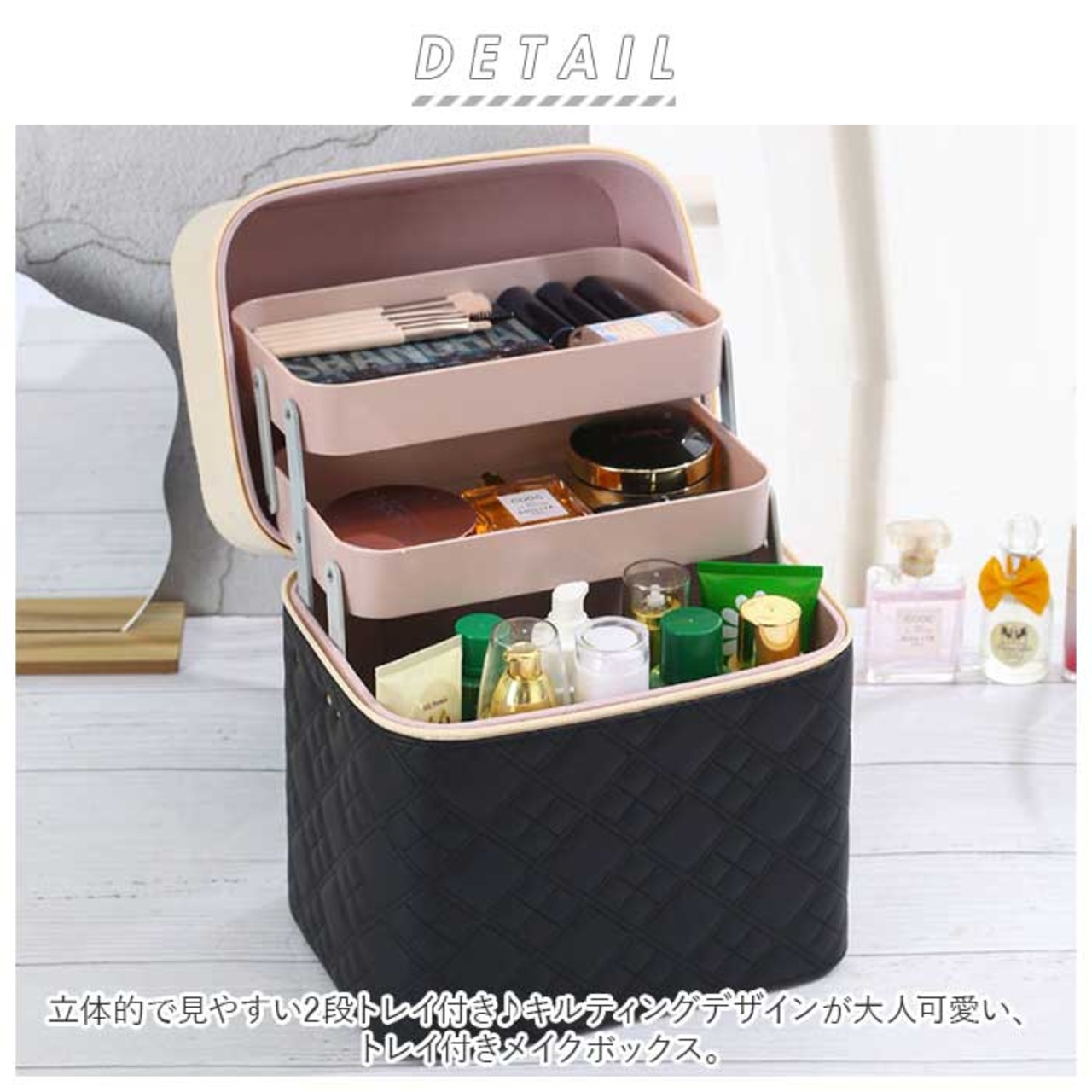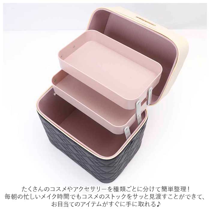 ・立体的で見やすい2段トレイ付き♪キルティングデザインが大人可愛い、トレイ付きメイクボックス。
