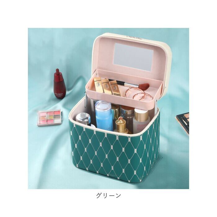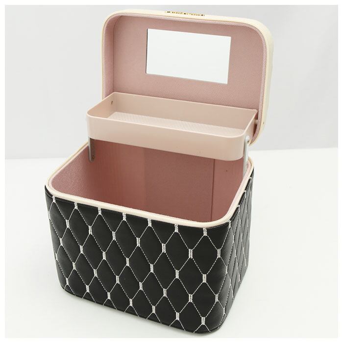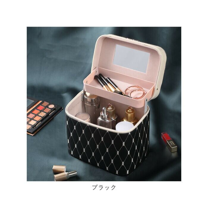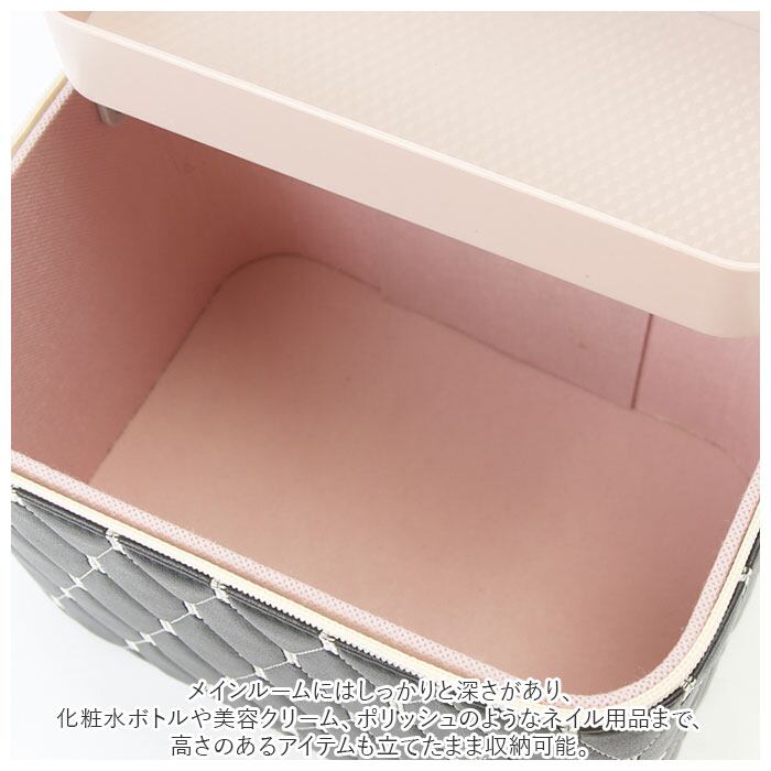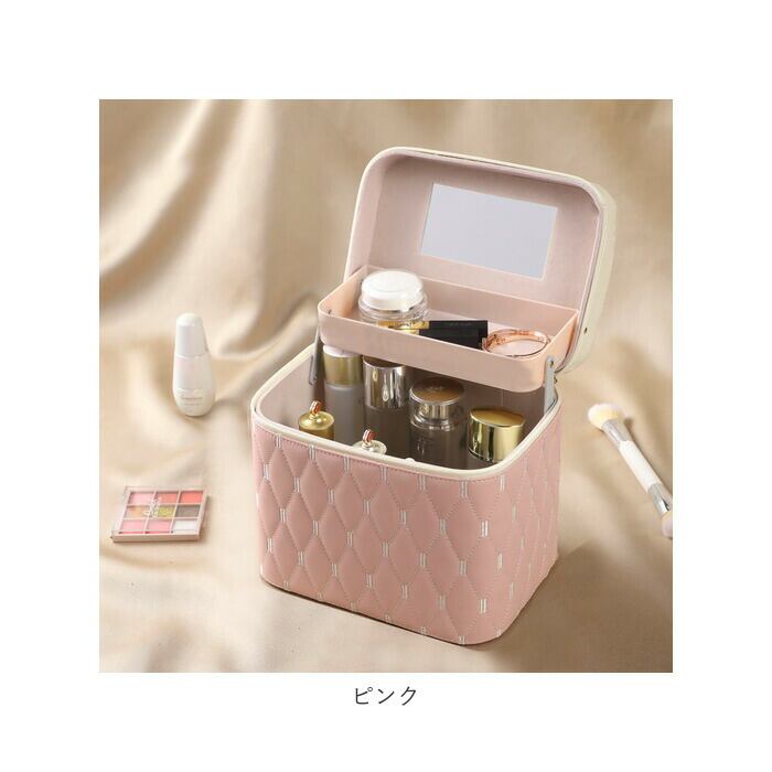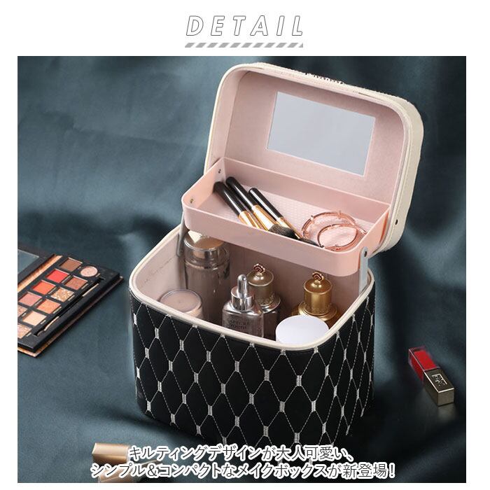・立体的で見やすいコスメトレイ付き♪キルティングデザインが大人可愛い、シンプル&コンパクトなメイクボックスが新登場!